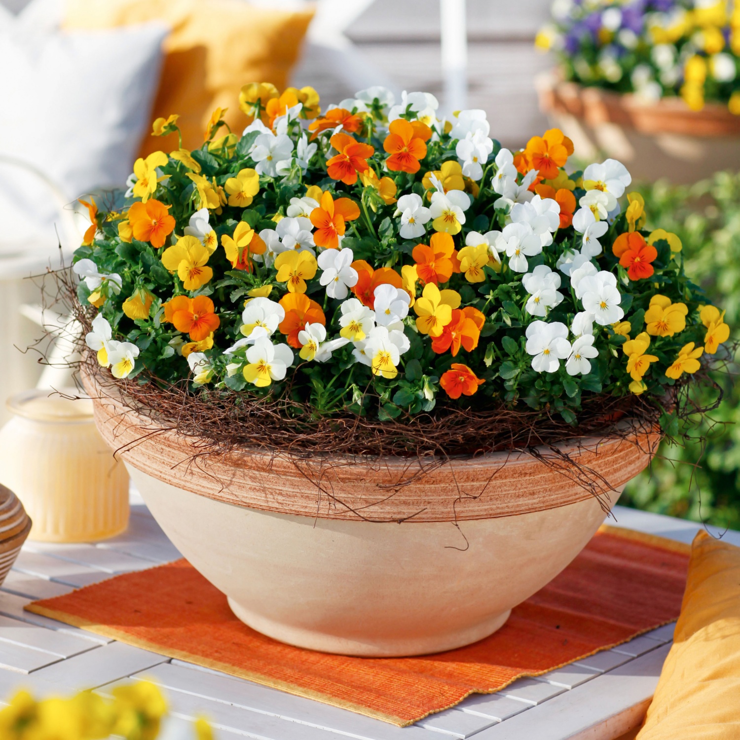 kb. 12 cm-es cserépben, min. magasság cseréppel együtt: kb. 15 - 20 cm, kedvelt tavaszi virágok, pl. árvácskatrió, szegfűtrió, nárcisz stb.