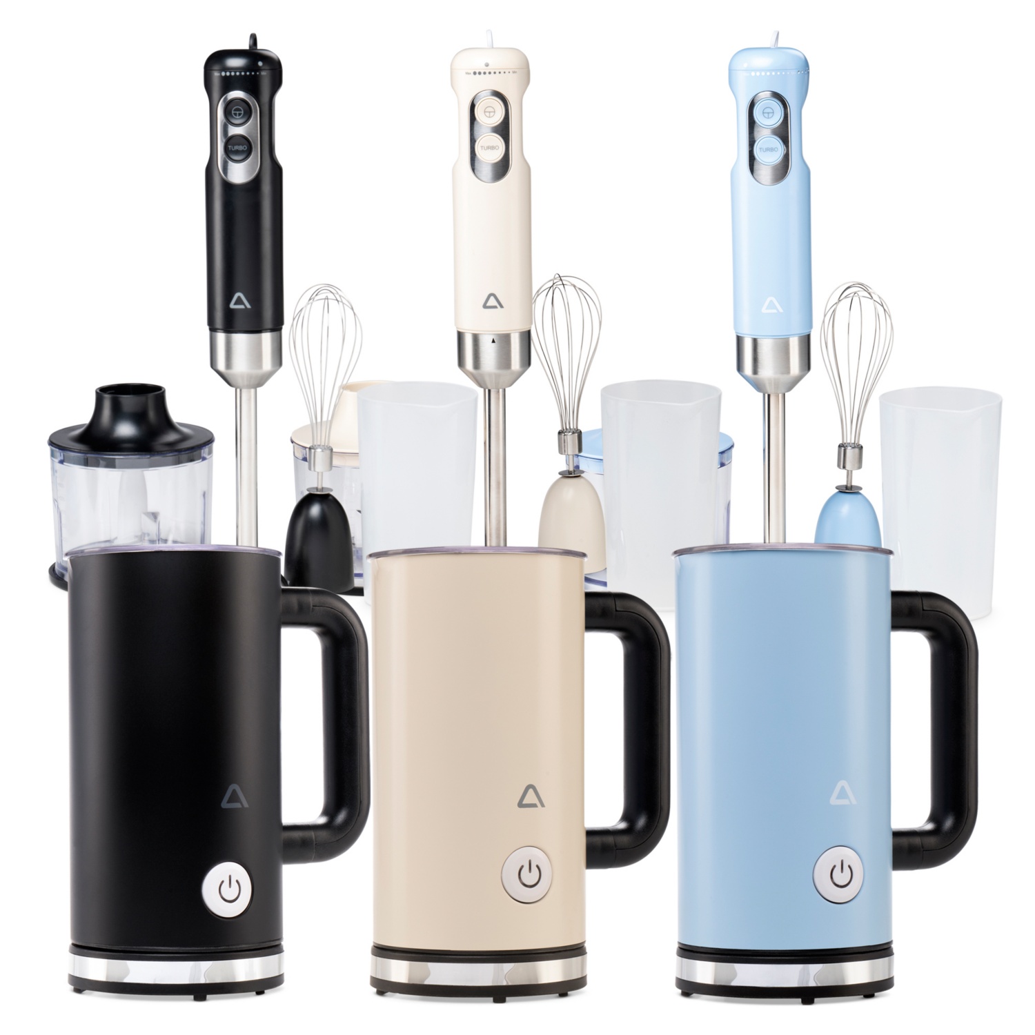 - 3 az 1-ben botmixer: botmixer, habverő, ill. multiaprító (űrtartalom: kb. 600 ml), mérőpohárral együtt, rozsdamentes acél pengék és habverő