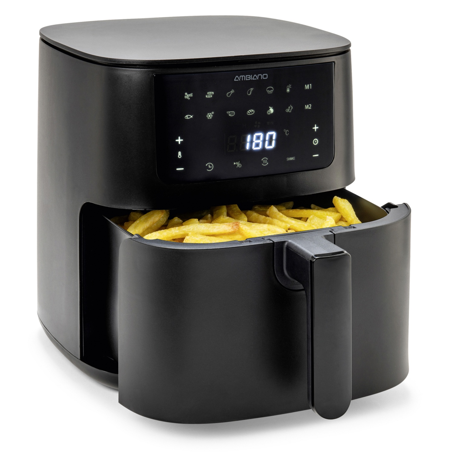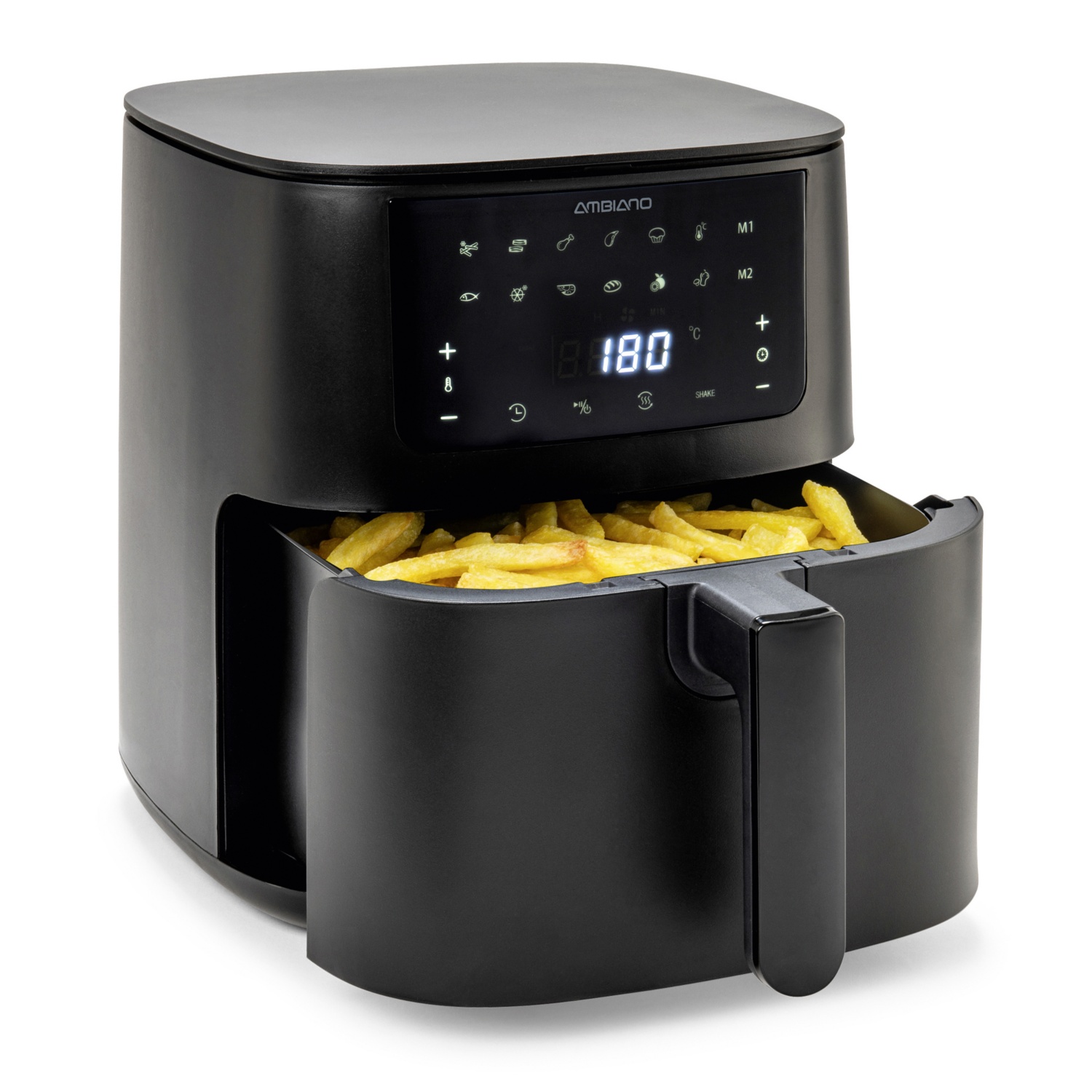 hőmérséklet kb. 40 °C és 200 °C között állítható, 24 órás digitális időzítő, LED-érintőképernyő 8 előre beállított programmal, rozsdamentes acél fűtőelem, túlmelegedés elleni védelem, a sütőkosár mosogatógépben mosható, űrtartalom: kb. 3,5 l