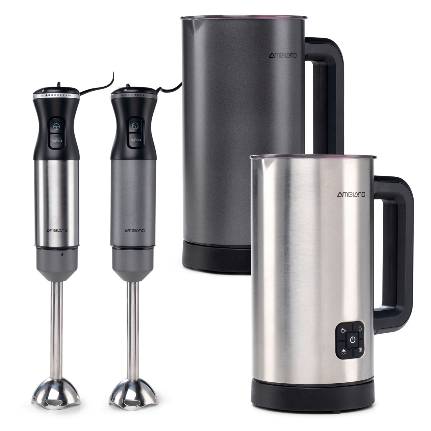 - botmixer: 2 teljesítményfokozat: turbó és normál, fokozatmentes sebességbeállítás, mérőpohárral, habverővel és mini aprítóval