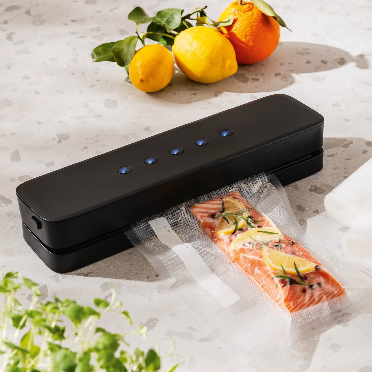 biztosítja az élelmiszerek szag- és ízsemleges tárolását, max. 30 cm széles, vákuumos fóliahegesztőhöz való fóliához alkalmas, 3 vákuumfokozattal