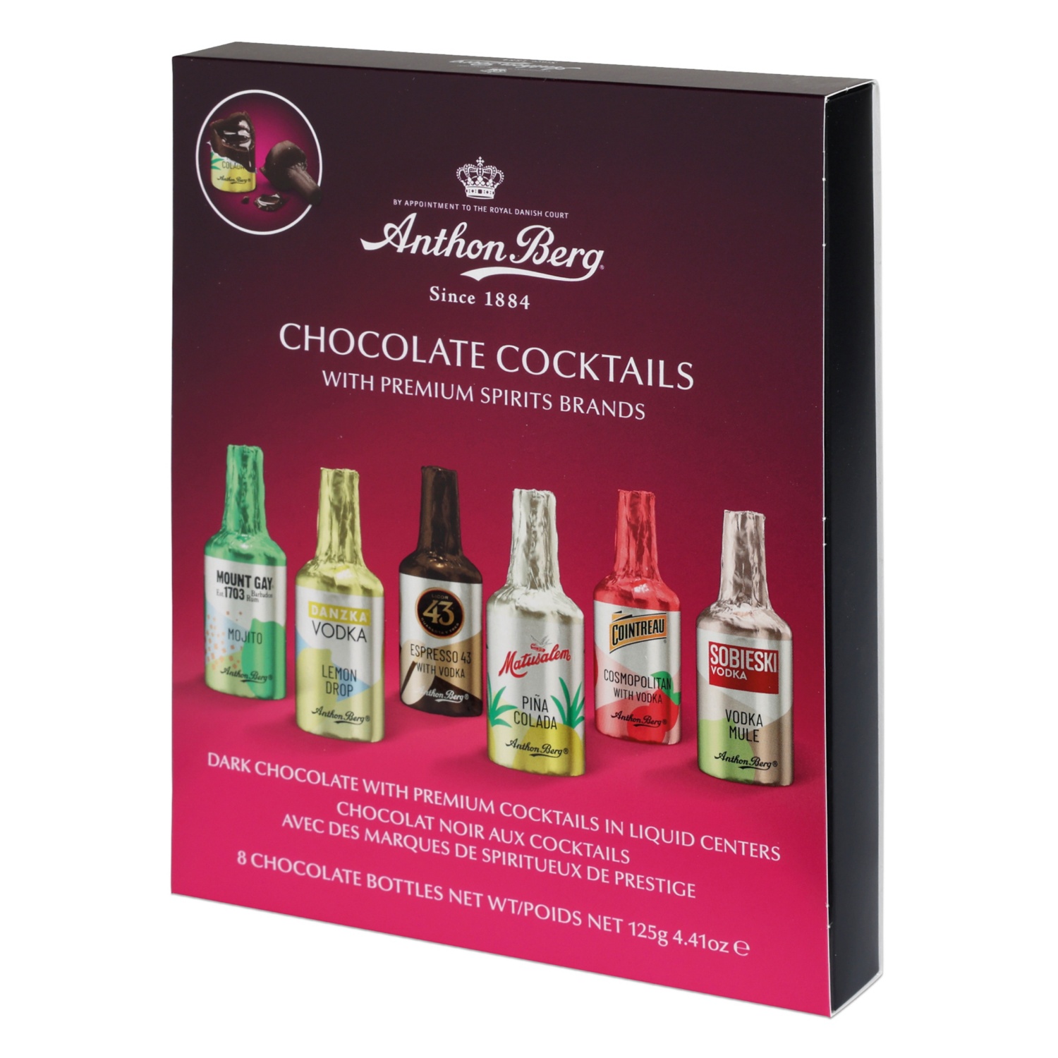 ANTHON BERG Praliné, koktéllal töltött csokoládé, 125 g