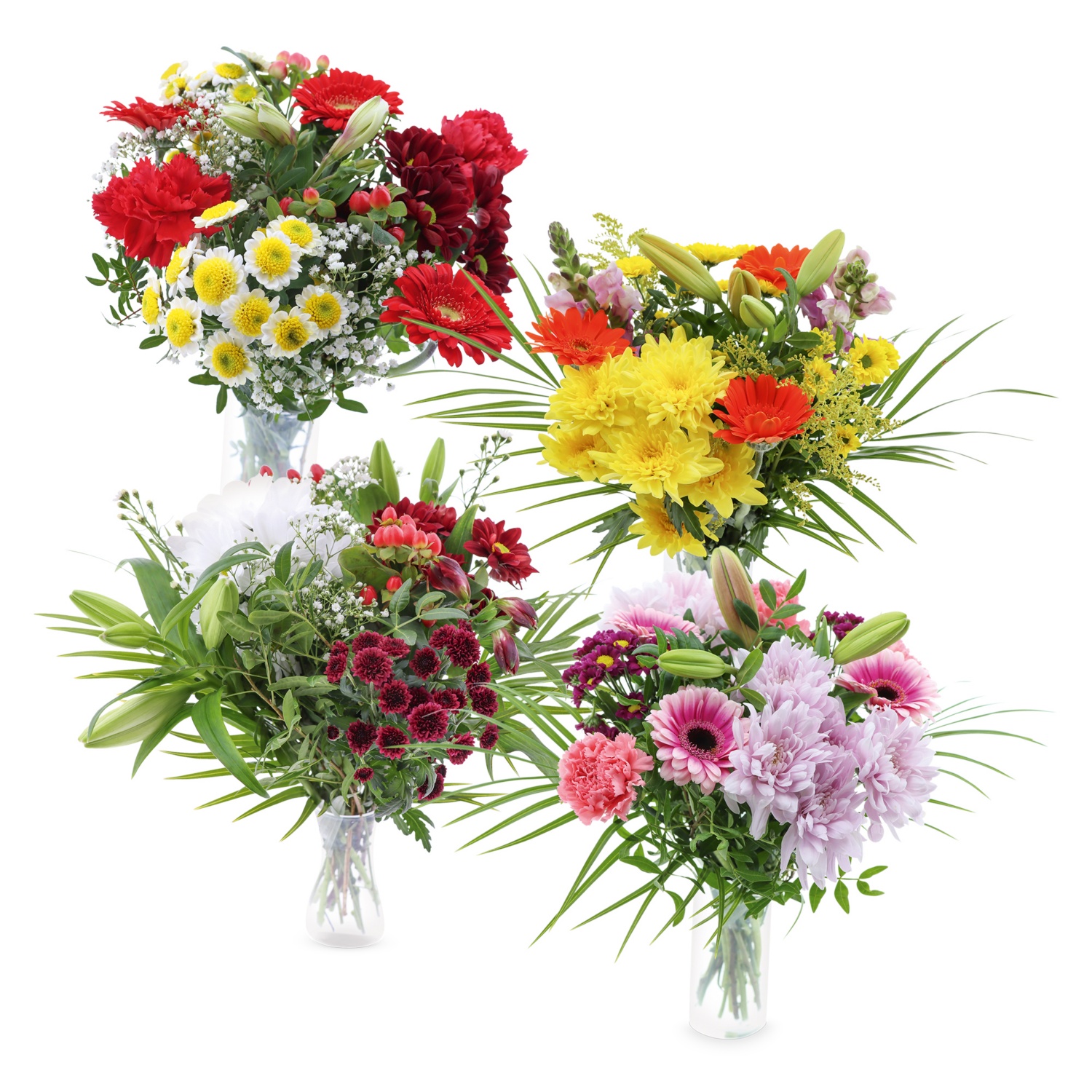 liebevoll arrangierter Strauß mit ca. 14-16 Stielen, in verschiedenen Blütenfarben