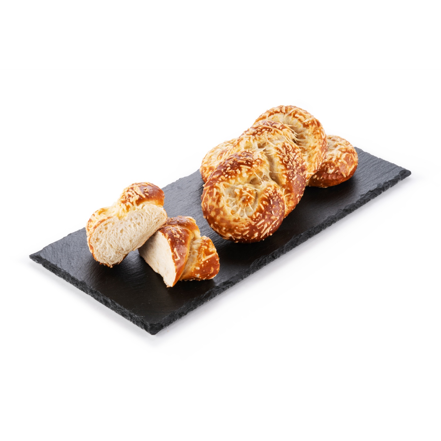 Bajor jellegű fonott kifli, sajttal megszórva, 100 g
