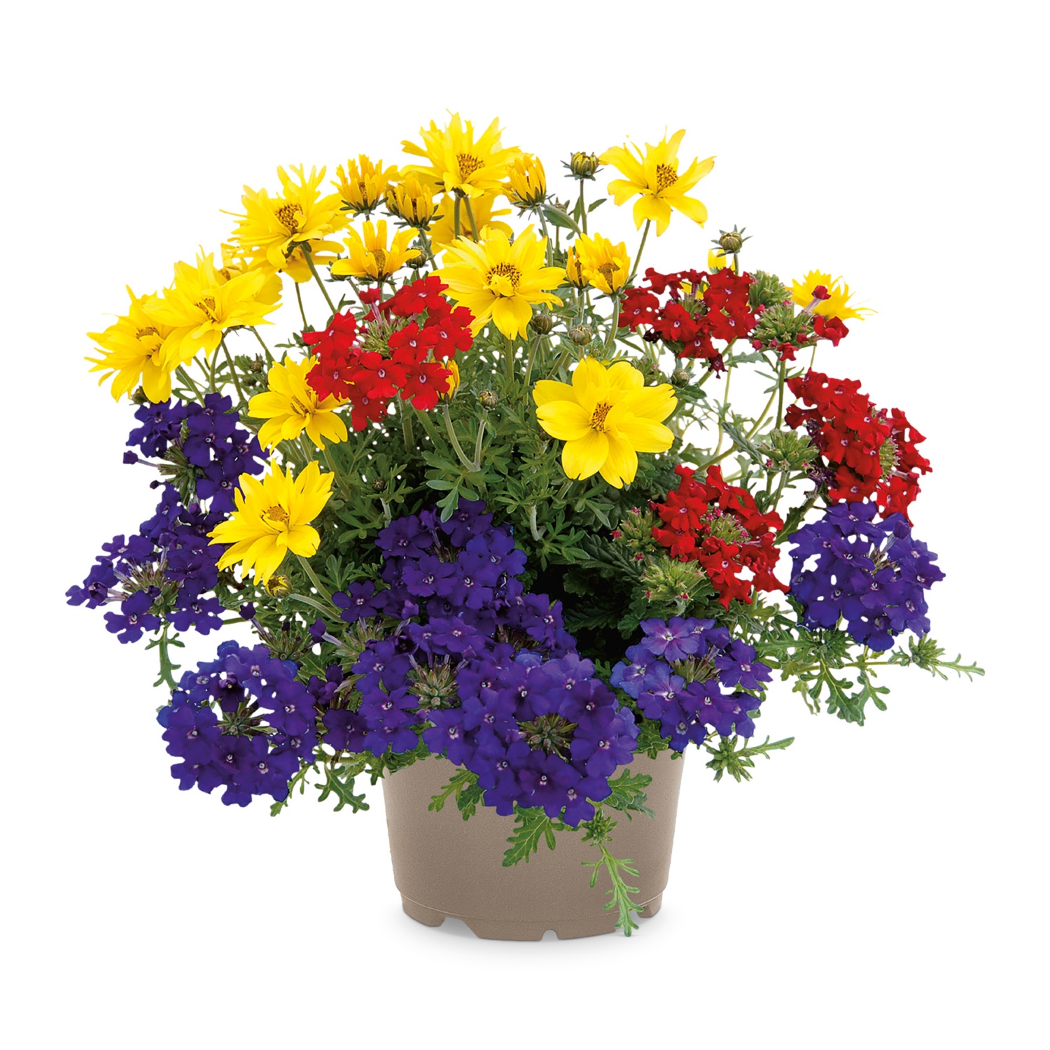 kb. 12 cm-es cserépben, cserepenként 3 különböző növény, különböző szín- és növénykombinációk, pl. petúniamix, lobéliamix stb.
