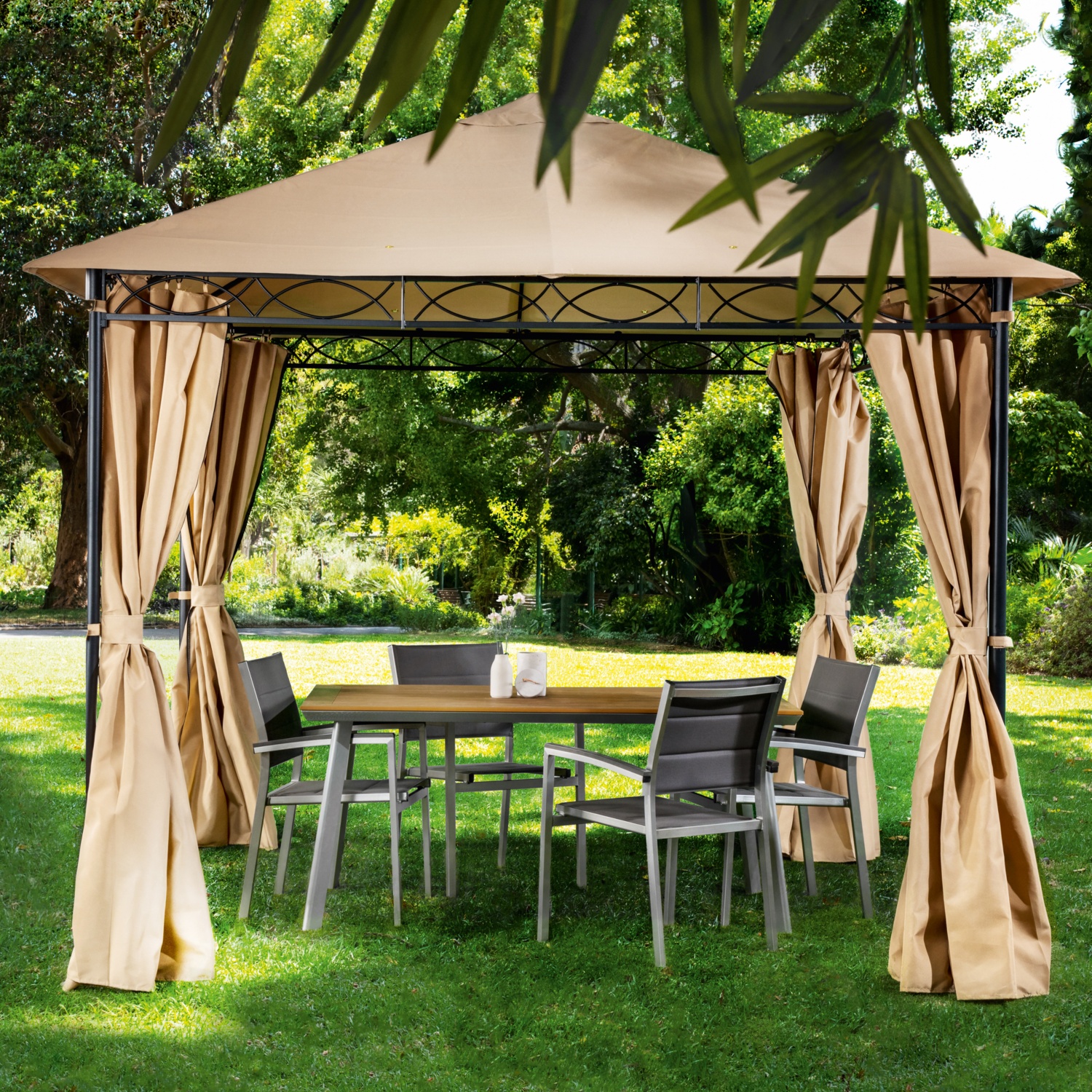 Tetõ (szélnyílással) poliészterbõl stabil acélcsõ konstrukció porszórt bevonattal- 4 poliészter oldalrésszel és 8 köszörült horgonnyal a rögzítéshez