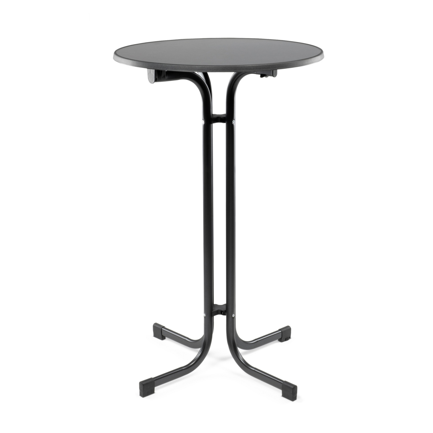 bel-, ill. kültéren egyaránt használható, időjárás-, hő-, sav-, ill. karcálló, valamint cigarettaégésnek ellenálló felület, ütésálló élekkel és strukturált felülettel ellátott, mecalit-Pro asztallap, 4 darab állítható magasságú, acélcsőből készült láb, méret: kb. 68 x 112 cm (Ø x ma)