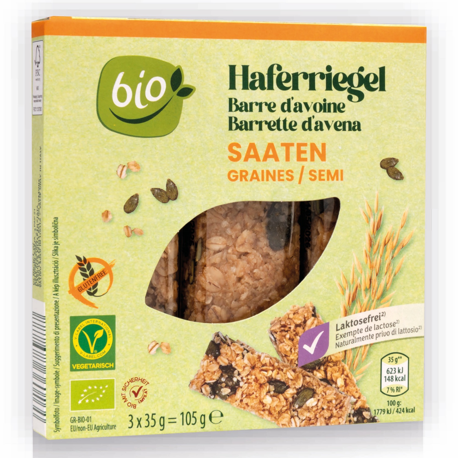 BIO BIO Teljes kiőrlésű zabszelet, magvas, 3 szelet
