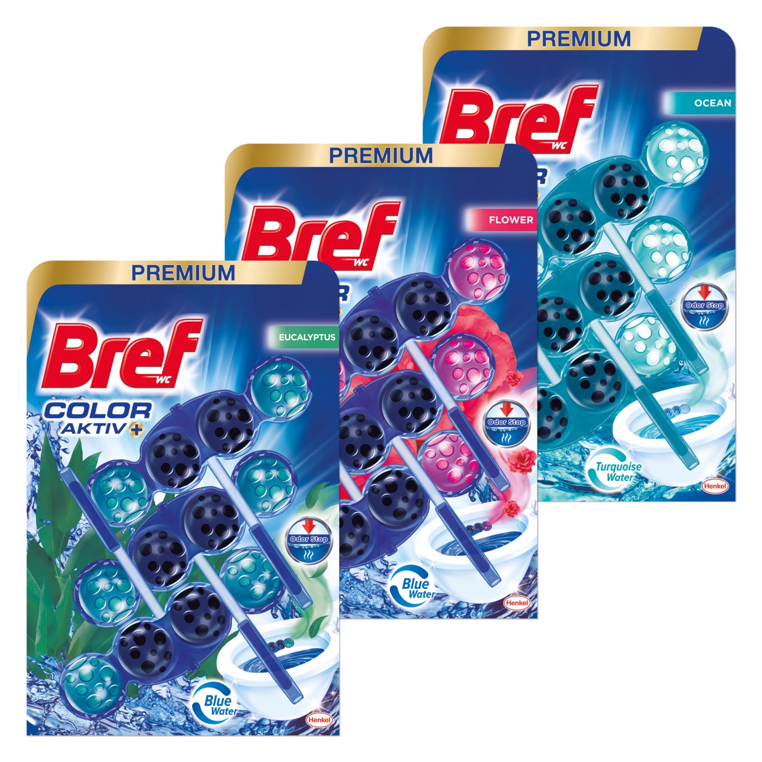 BREF WC-frissítő Color Aktiv + Premium, 3 darab