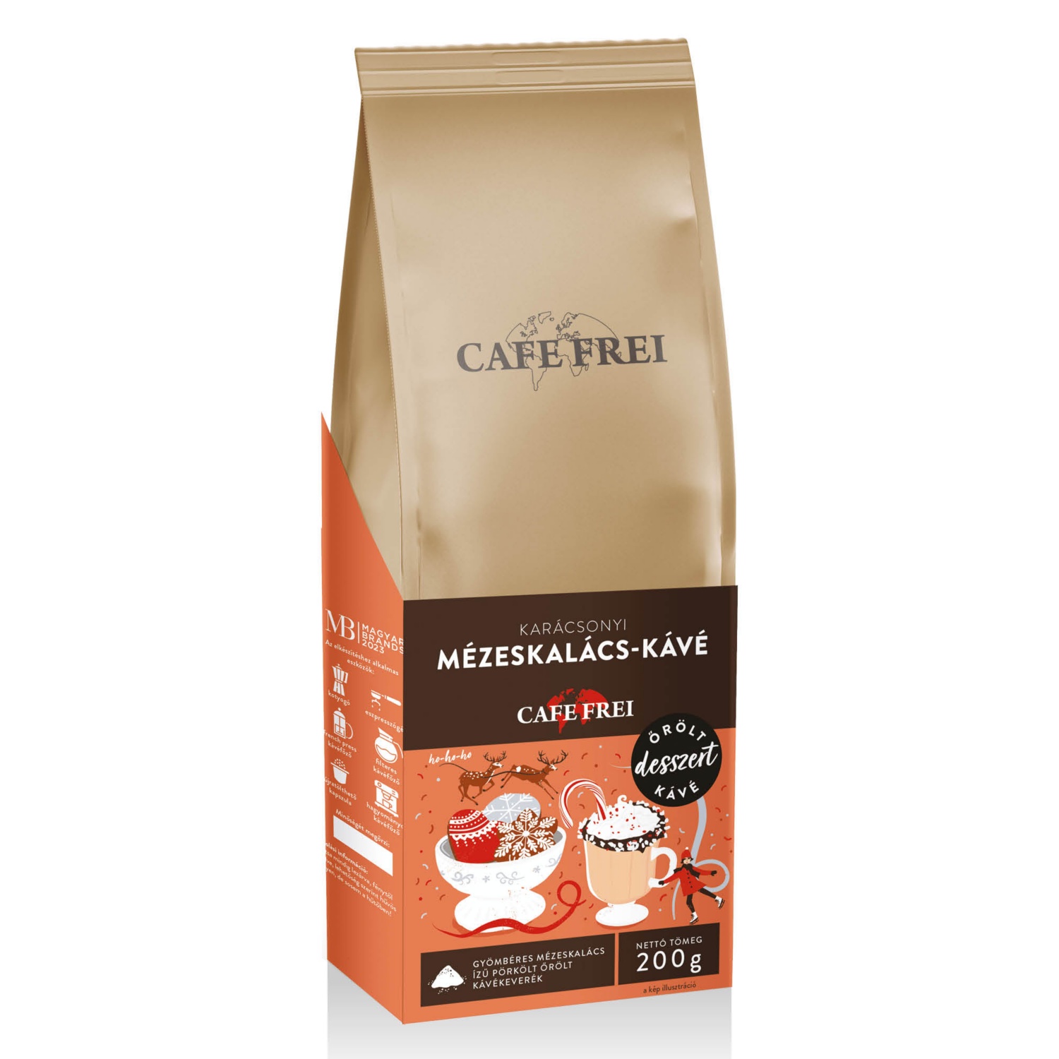 CAFE FREI Őrölt kávékeverék, karácsonyi mézeskalács-kávé, 200 g