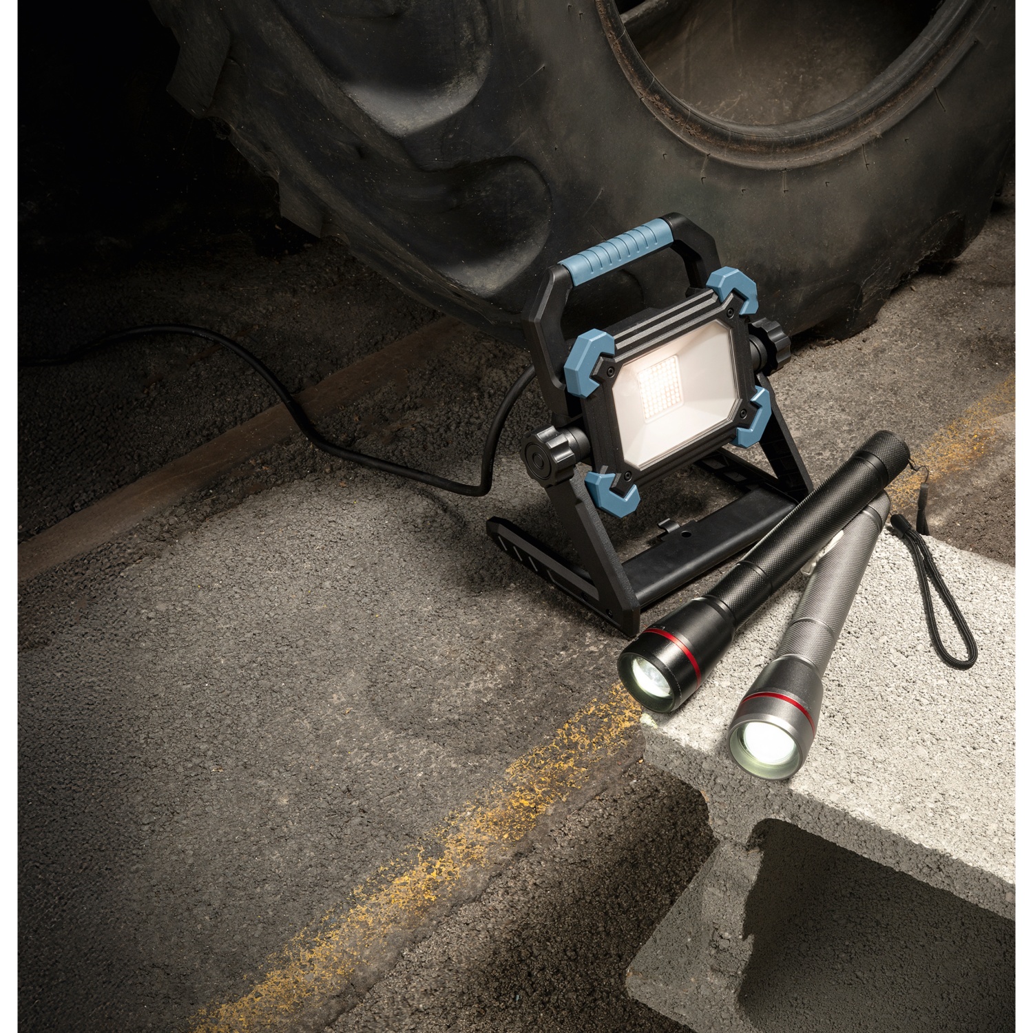 fokozatmentesen szabályozható fényerősség, IP54 védettség, praktikus vezetékcsévélővel