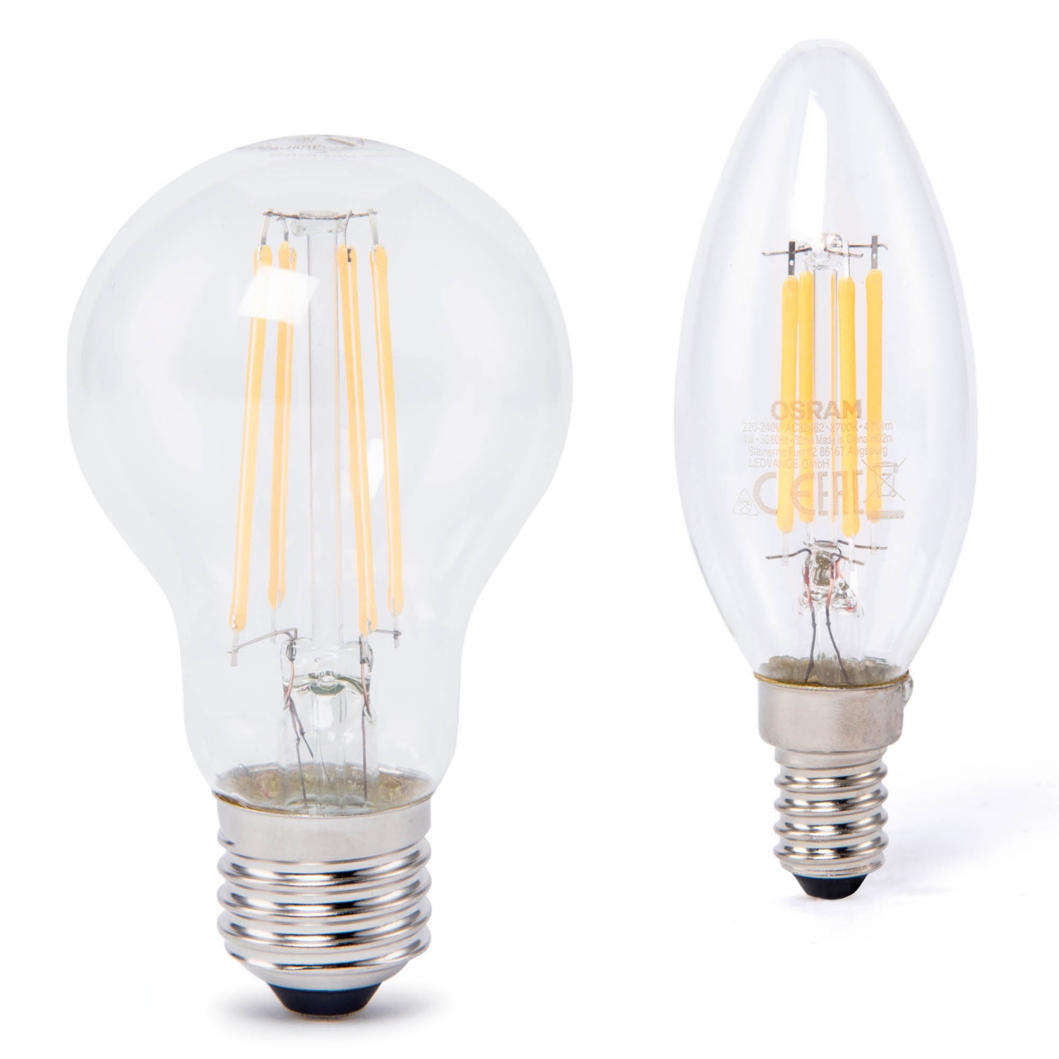 - gyertya alakú: 4,2 W (40 W), E14, 470 lm