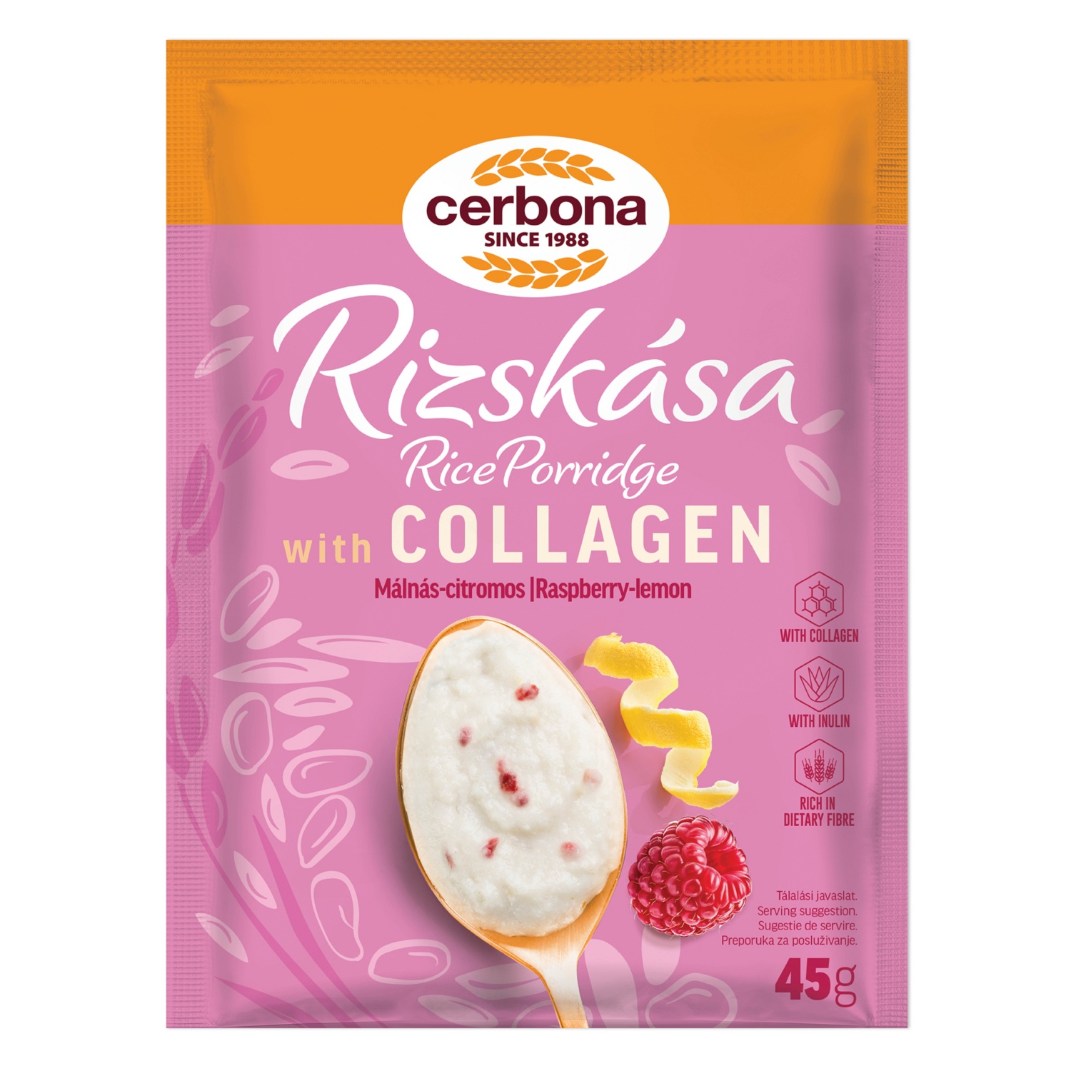 CERBONA Rizskása kollagénnel, málnás-citromos, 45 g