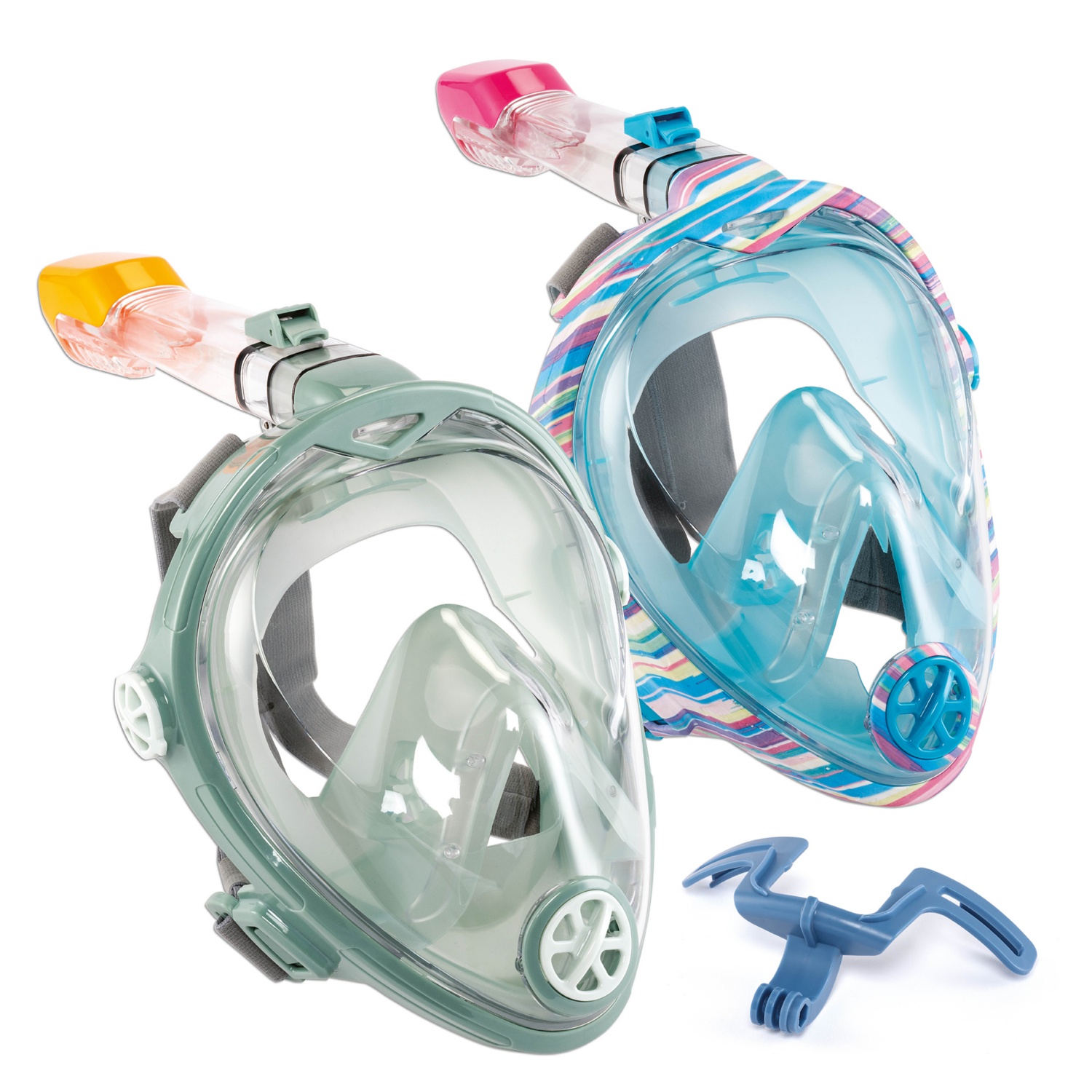 180°-os panorámalencse a lenyűgöző víz alatti élményért, könnyen kezelhető a kihúzható légzőcsőnek köszönhetően, rugalmas pánttal ellátott maszk, beépített tartóval a legtöbb, kereskedelmi forgalomban kapható akciókamera rögzítéséhez, méret: S/M vagy L/XL