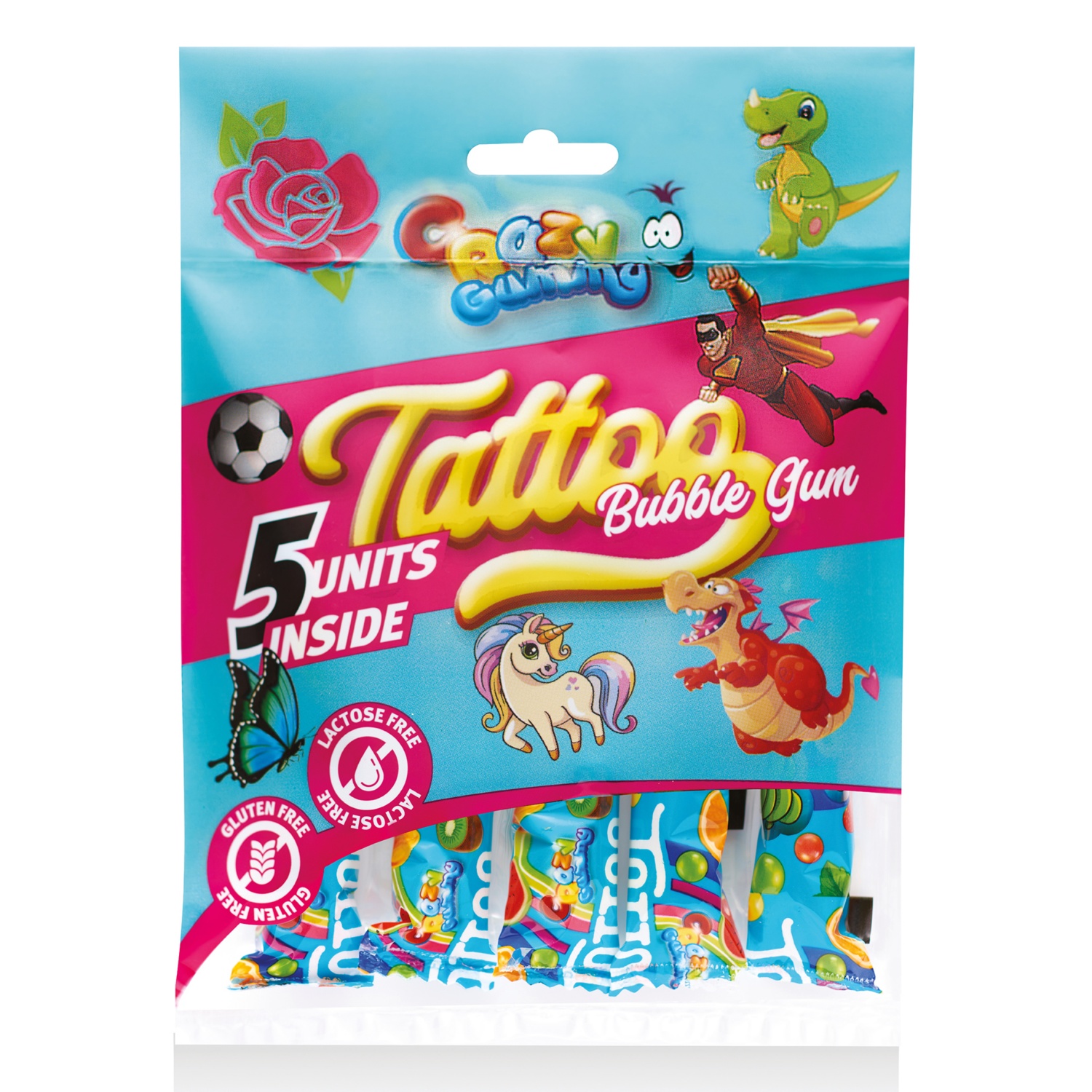 rágógumi tetoválással a csomagolásban
