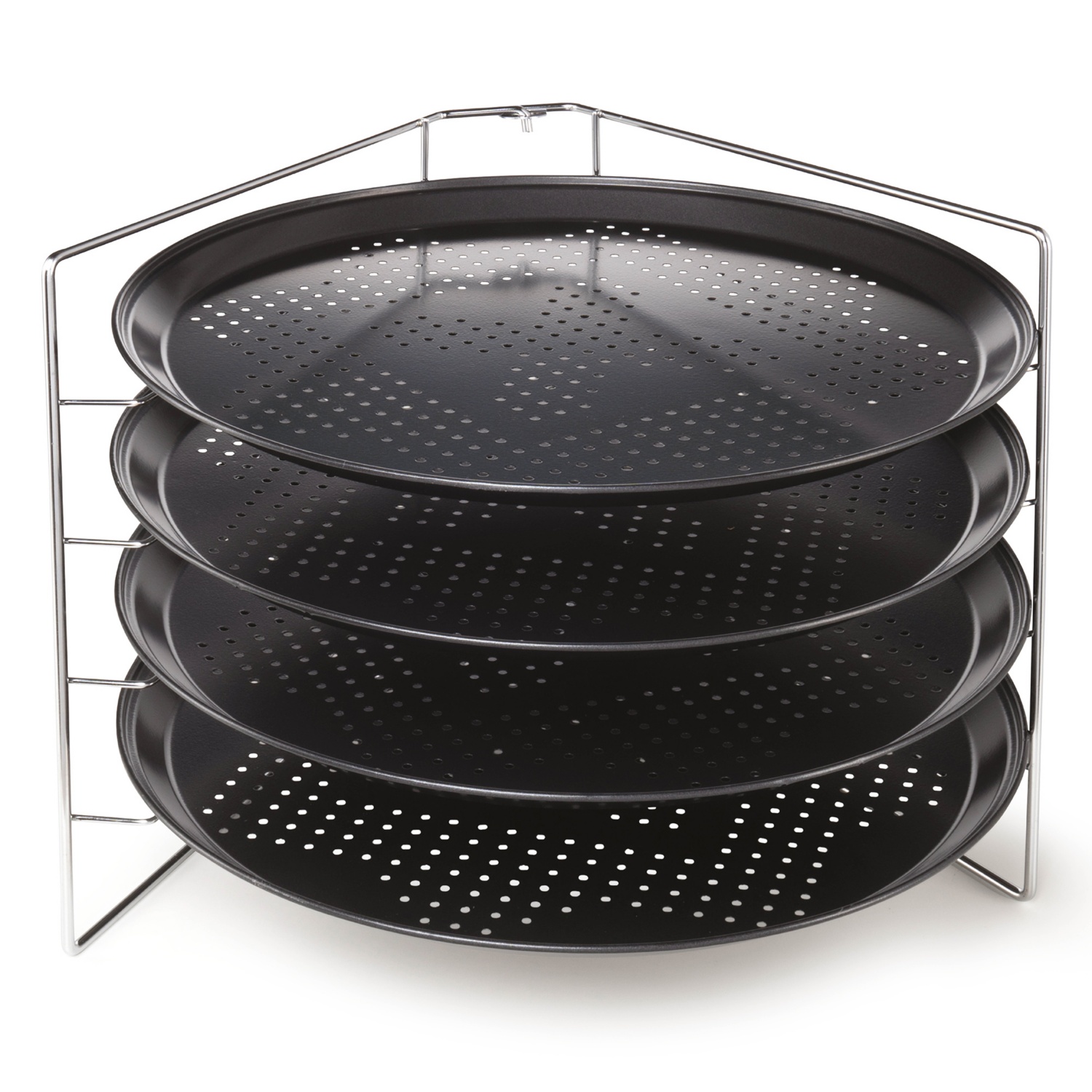 összecsukható állvánnyal, 4 darab perforált tepsivel, méret tepsinként: Ø kb. 32 cm, teljes méret: kb. 32 x 26 x 27 cm (ho x szé x ma)