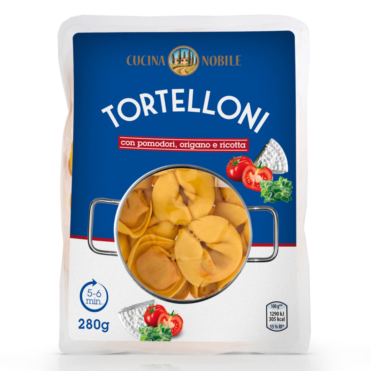 CUCINA NOBILE Prémium töltött tészta, 280 g, paradicsomos-ricottás
