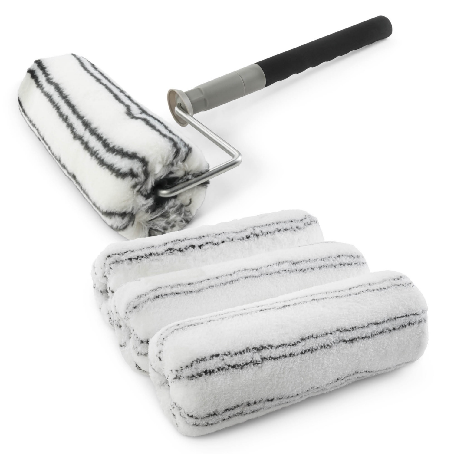 - poliakril tartalék henger, 3 darab: méret: kb. 25 cm, párnázás: kb. 8 mm, szálhossz: kb. 18 mm, gyártási típus: szőtt vagy