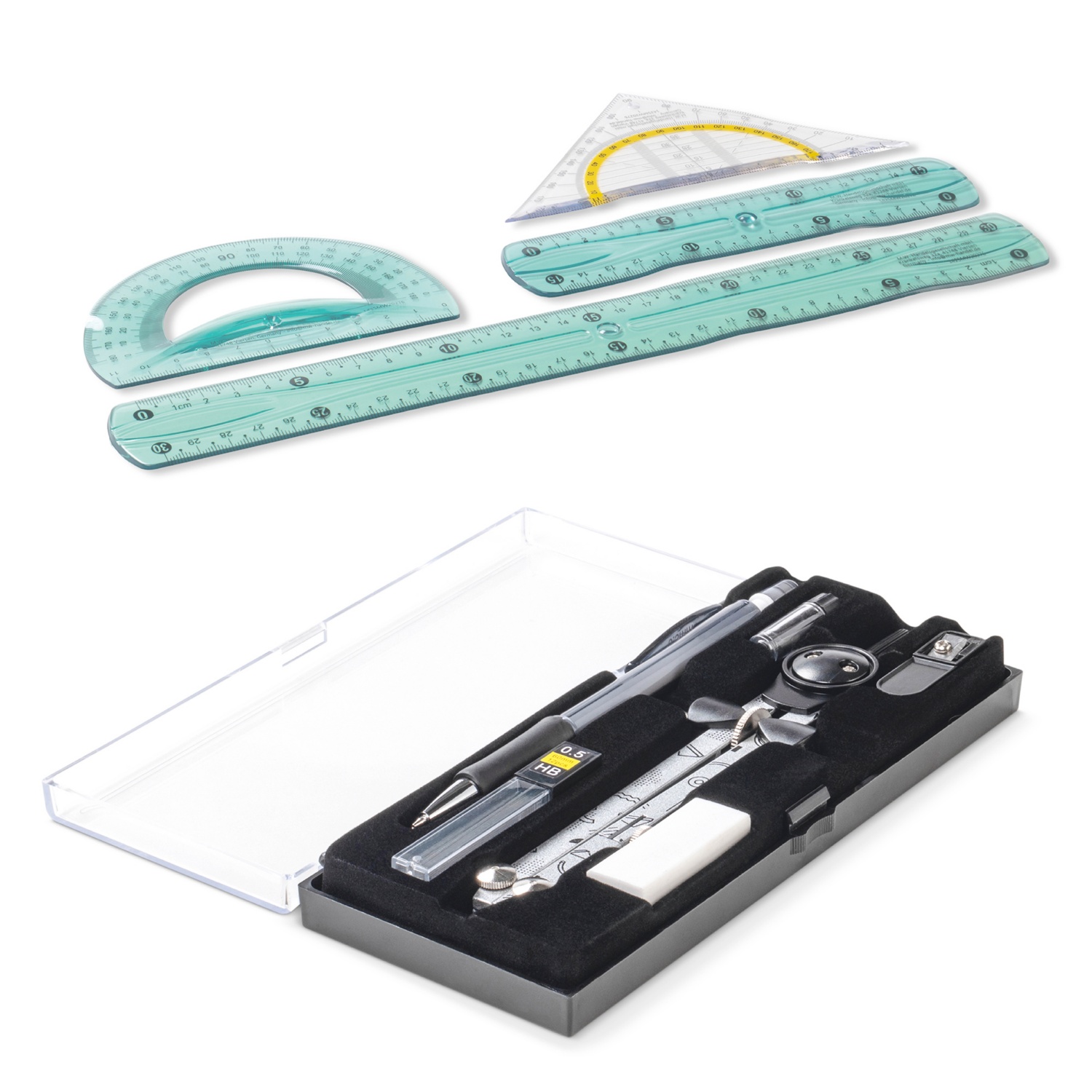 - körzőkészlet műanyag tartóban, 6 részes vagy