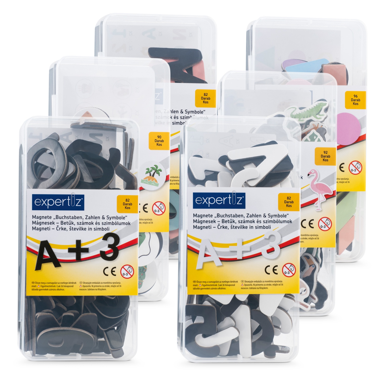 - betűk, számok és szimbólumok, 82 részes vagy