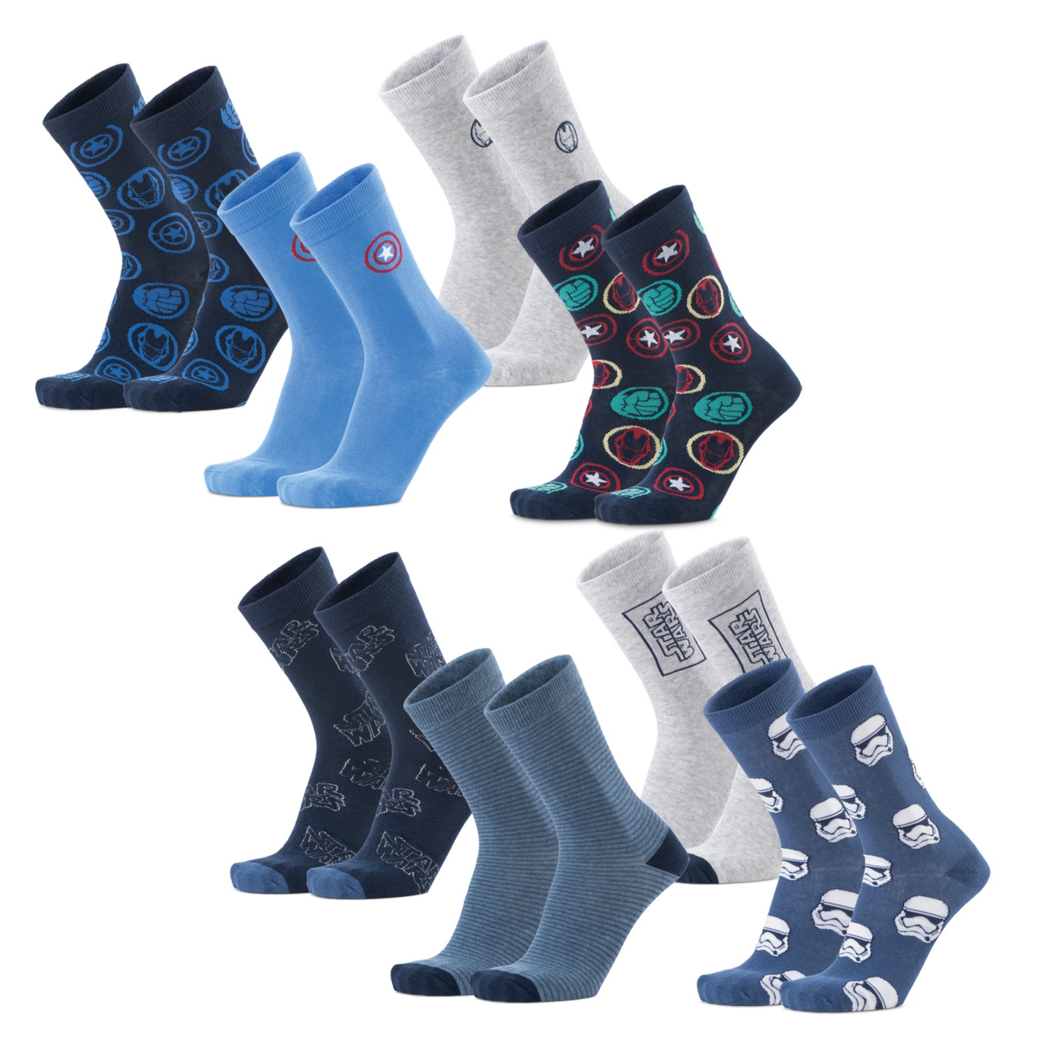 Marvel vagy Star Wars motívumokkal, méret: 39/42 - 43/46 4 pár/csomag Cikkszám: 826953