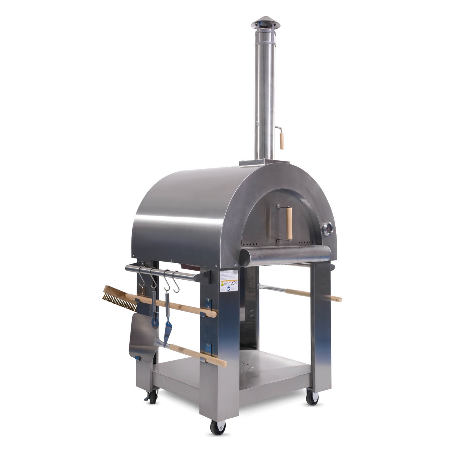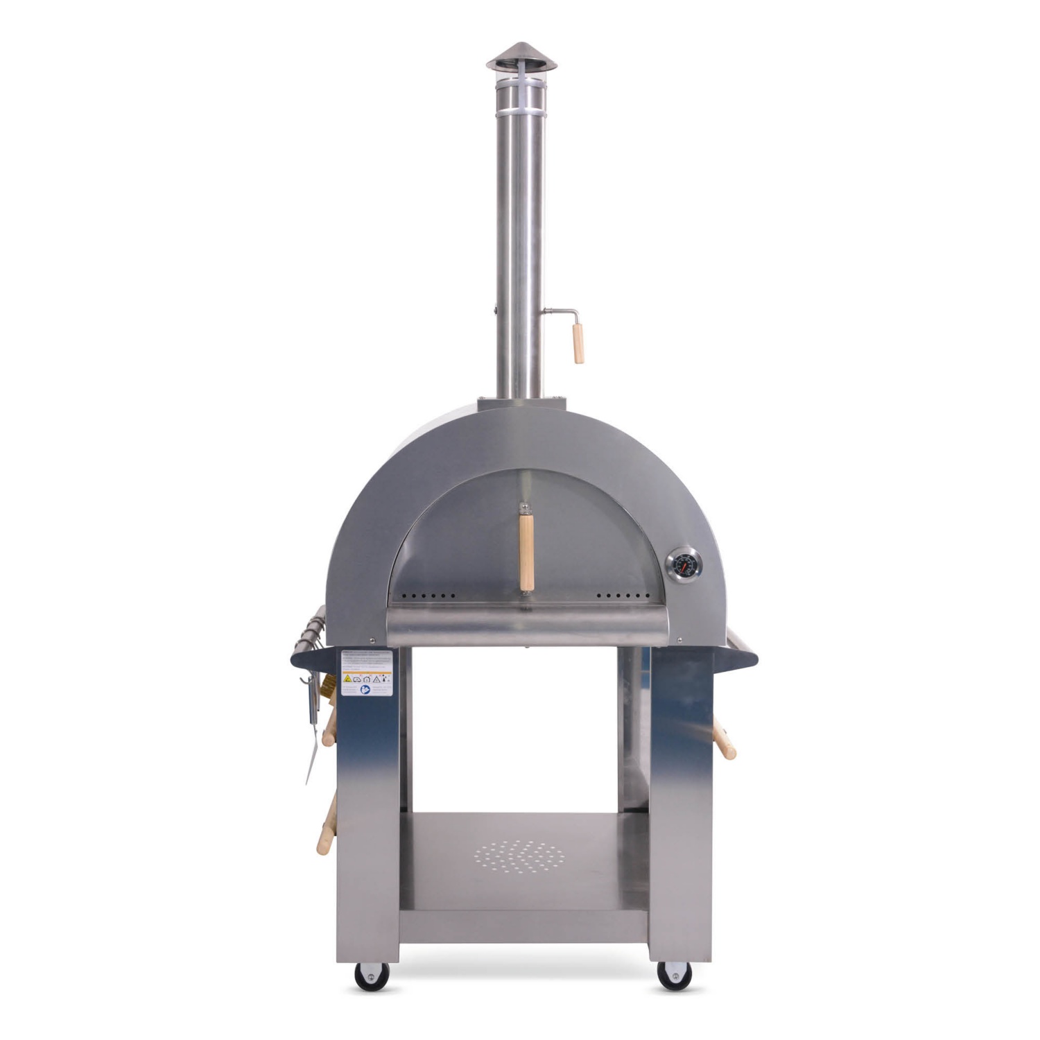 - sütőkefével, pizzalapáttal, kis pizzaemelővel, pizzaszeletelővel, parázskihúzóval, ill. időjárásvédő fedéllel