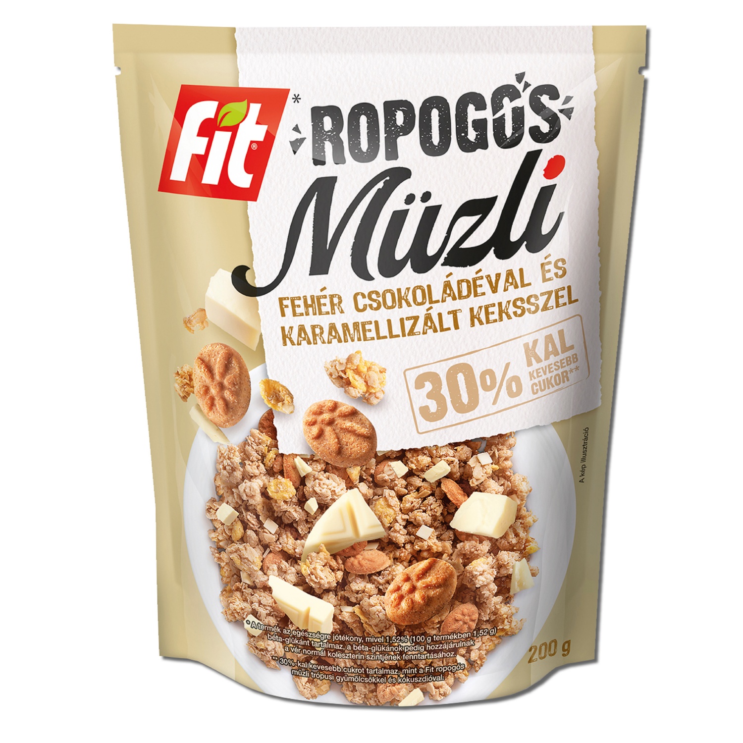 FIT Ropogós müzli, fehér csokoládés-karamellizált kekszes, 200 g