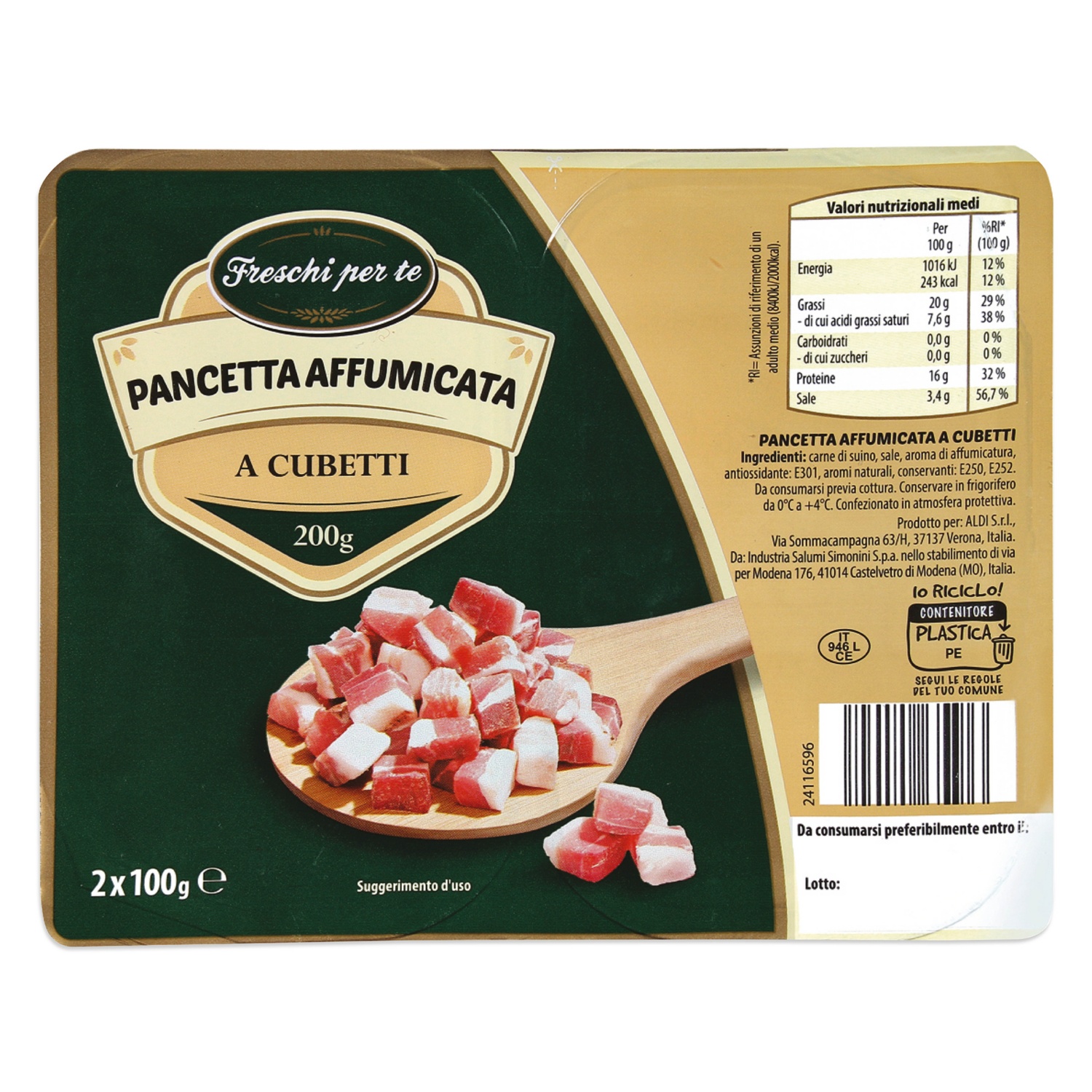 FRESCHI PER TE FRESCHI PER TE Kockázott szalonna, füstölt, 2 x 100 g