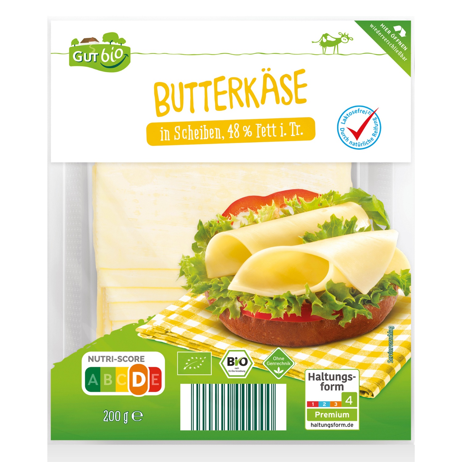 GUT BIO GUT BIO Bio szeletelt sajt, Butterkäse, 200 g