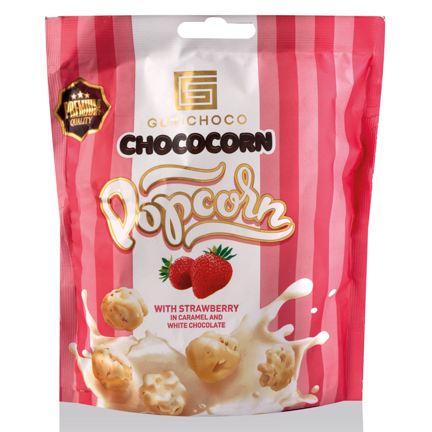 GUTI CHOCO Csokoládéval bevont popcorn, epres-fehércsokis, 70 g
