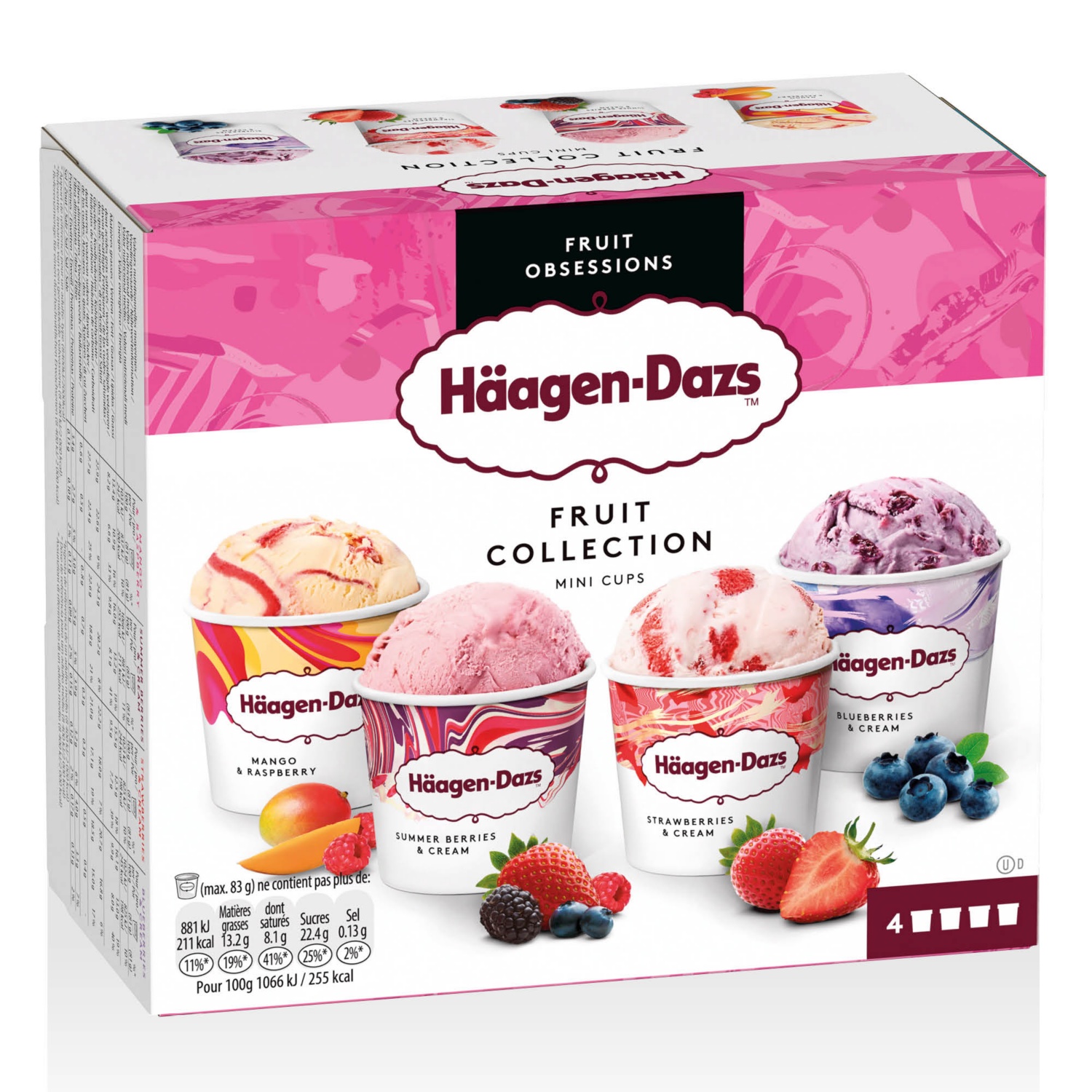 HÄAGEN-DAZS Jégkrém, gyümölcsös válogatás, 4 x 95 ml