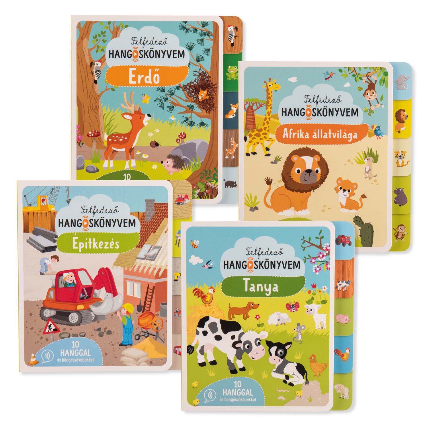 különböző hangokkal, feladatokkal, ill. informatív szövegekkel, többféle cím