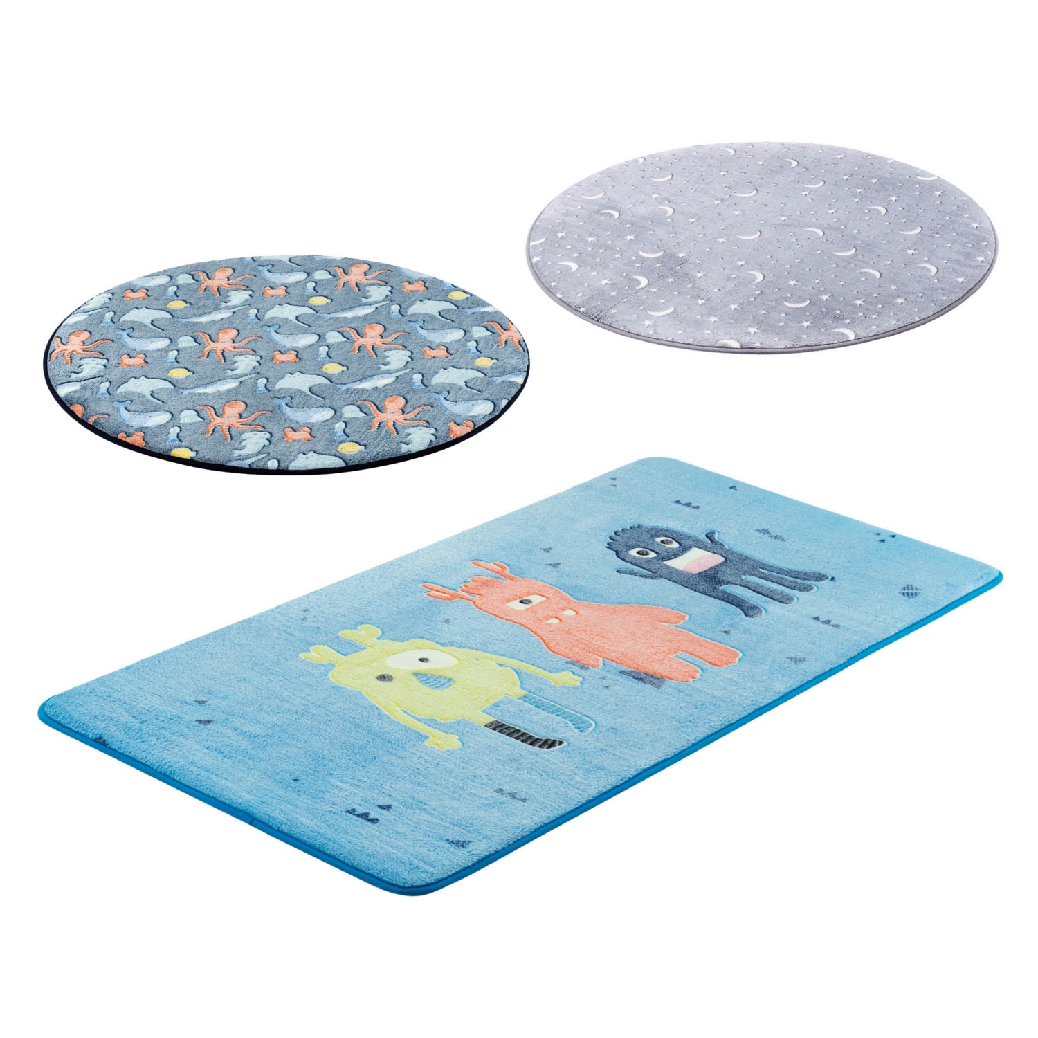 100 % poliészter csúszásgátló pöttyökkel (nem PVC), 20 D / 10 mm vastag PU-hab töltelékkel, beltérre, padlófűtéshez is alkalmas, 30°-on mosható
