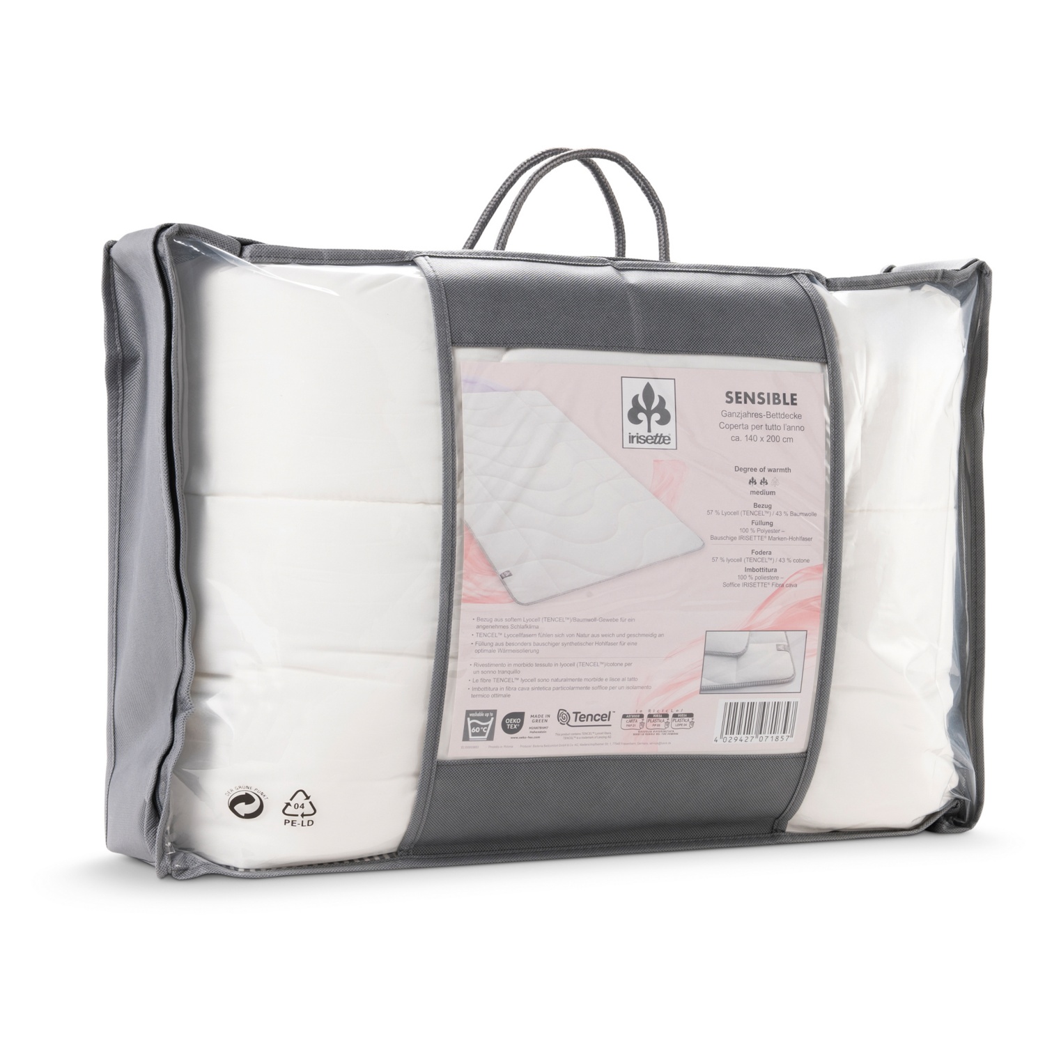 huzat: 57 % Lyocell (TENCEL™), 43 % pamut, töltet: 100 % poliészter,