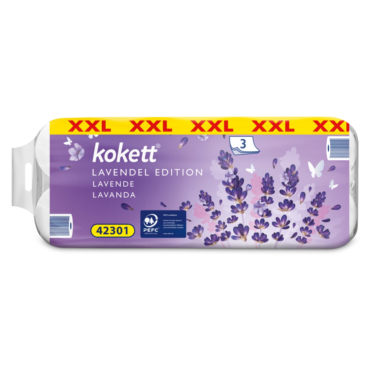 levendulaillattal, 3 rétegű 20 x 150 lap/csomag 20 tekercs/csomag Cikkszám: 724740