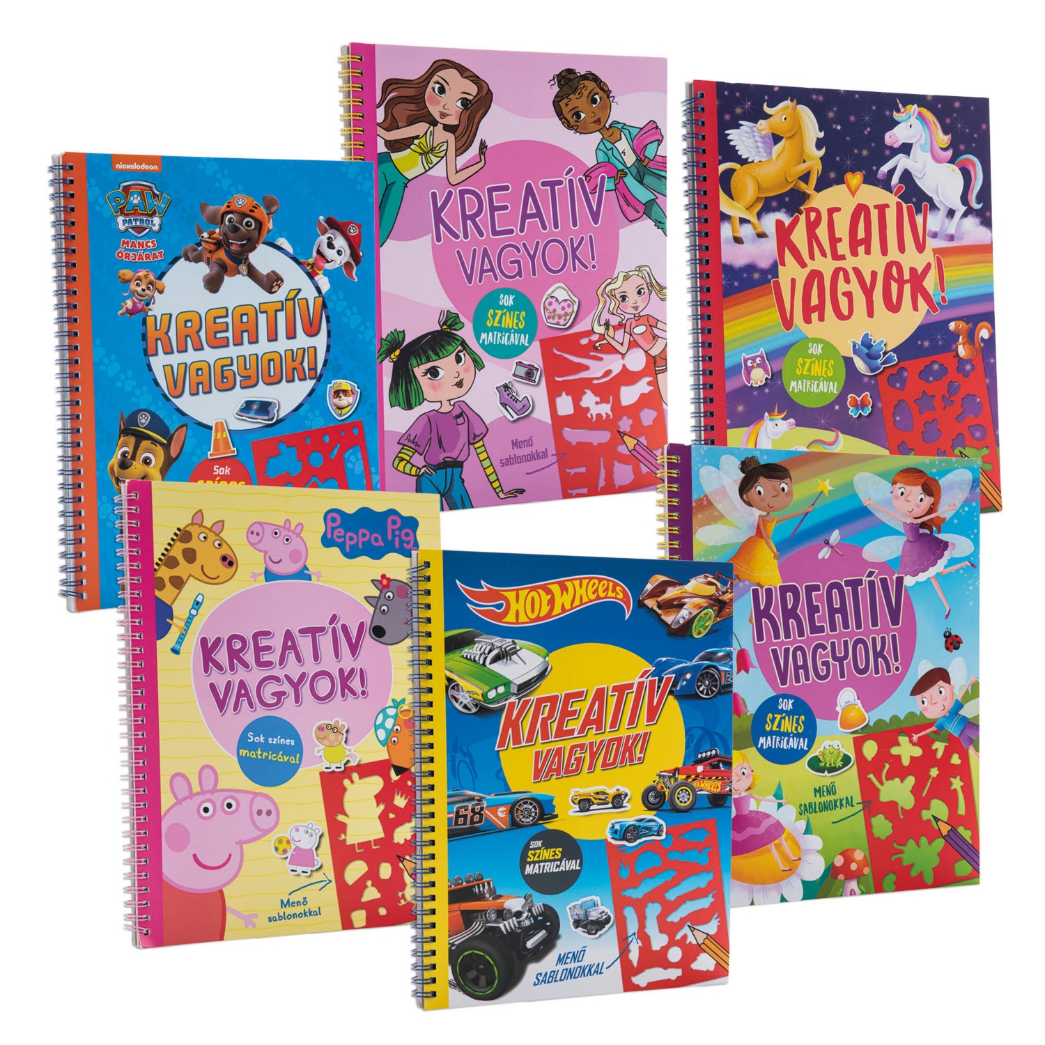 sablonokkal és színes matricákkal, többféle cím