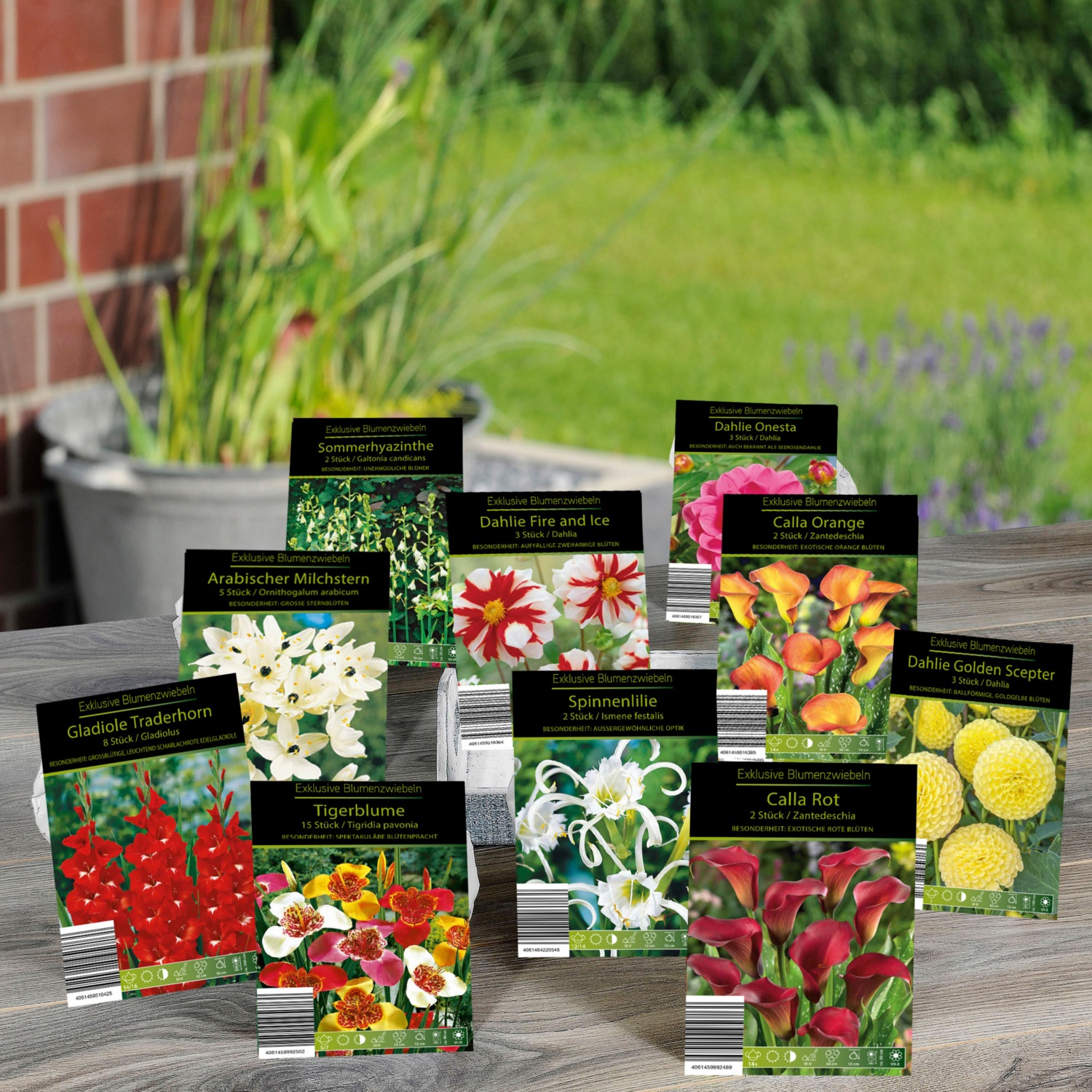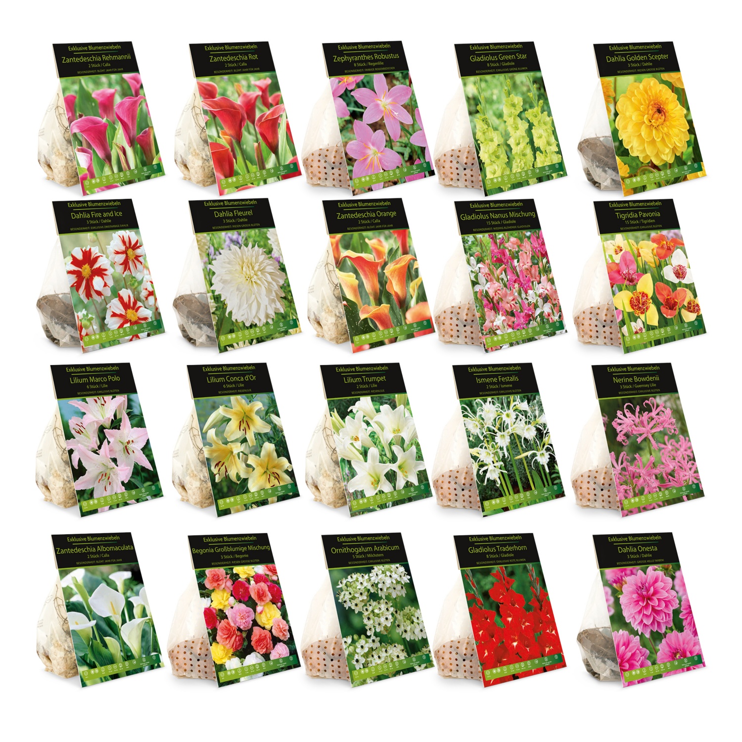 különböző fajták, különösen dekoratív virágokkal, pl. dália, törpe kardvirág, királyliliom stb.