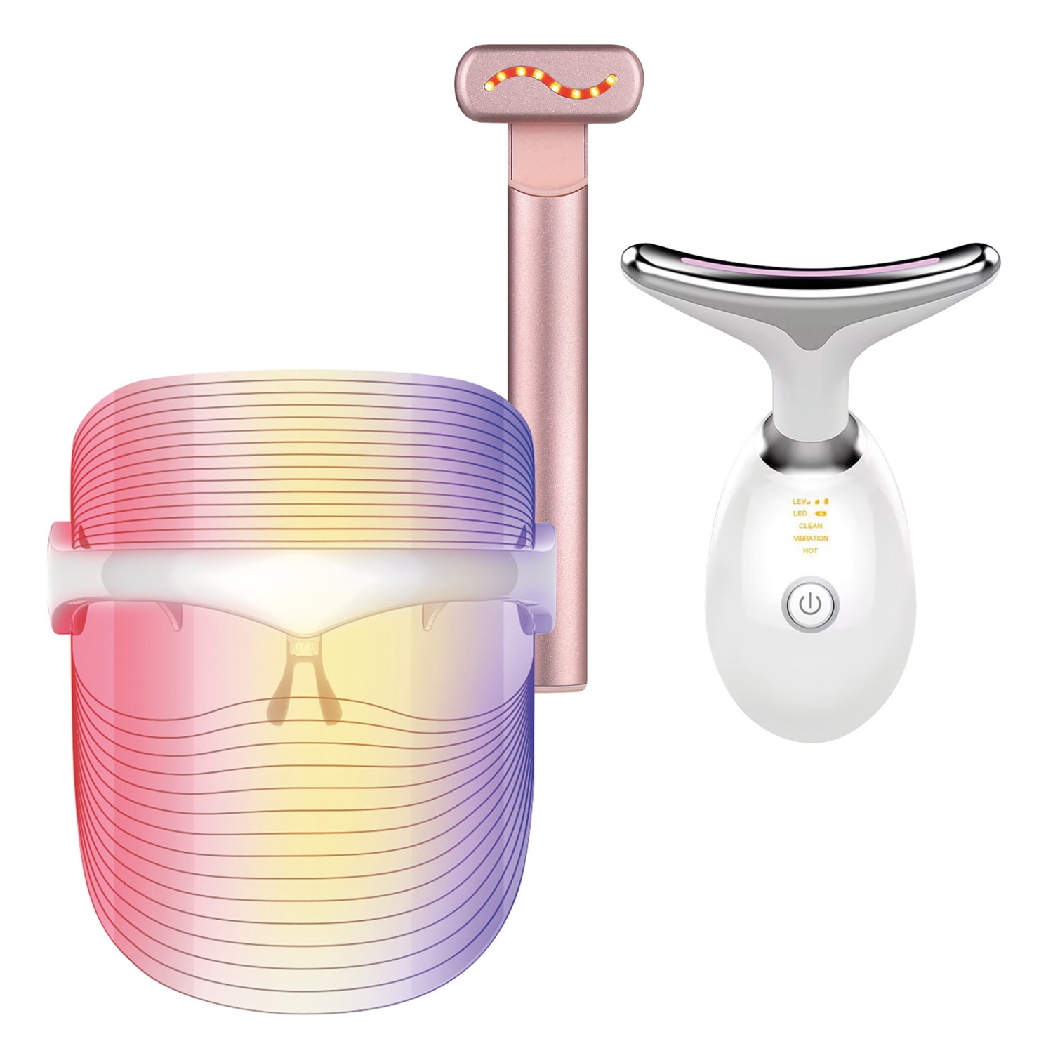- LED-es arcmaszk: 7 darab LED-fénnyel, méret: kb. 175 x 115 x 200 mm vagy