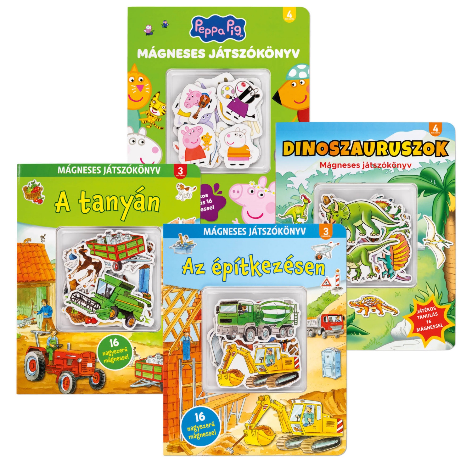 4 jelenetkép, tárolórekesz az összes mágnes számára, 4 éves kortól ajánlott, többféle cím