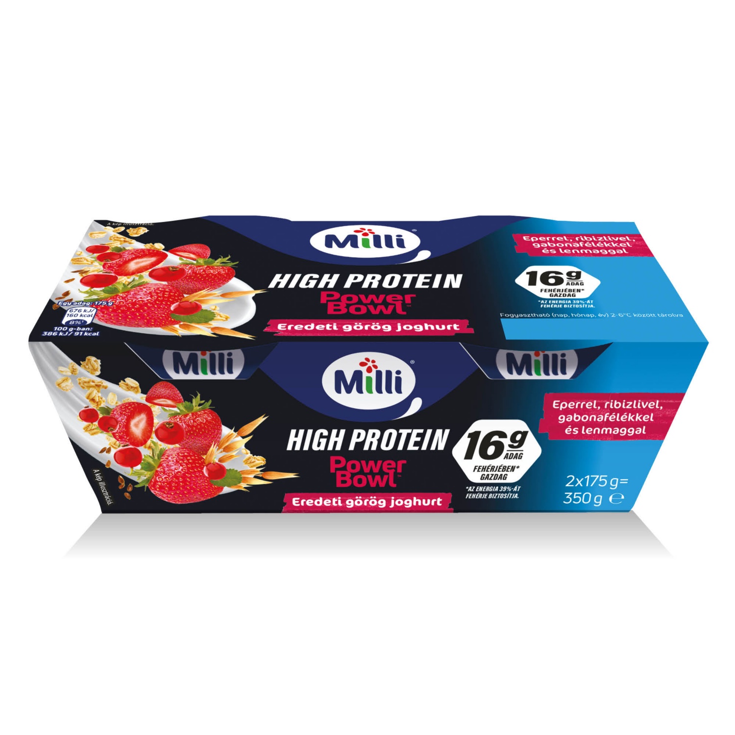 görög krémjoghurt eperrel, ribizlivel, gabonafélékkel és lenmaggal, zsírszegény