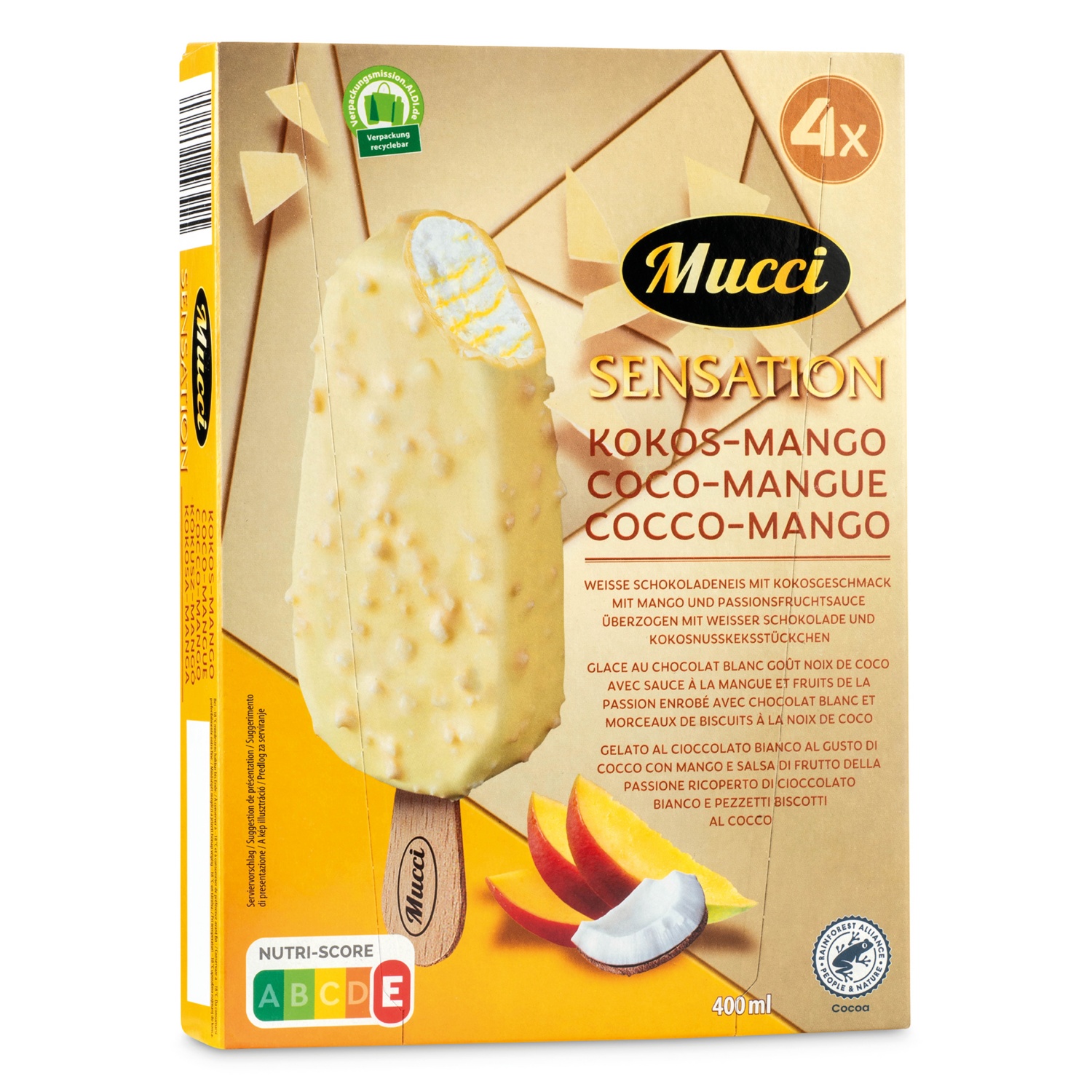 MUCCI MUCCI Pálcikás jégkrém, kókusz-mangó, 4 darab