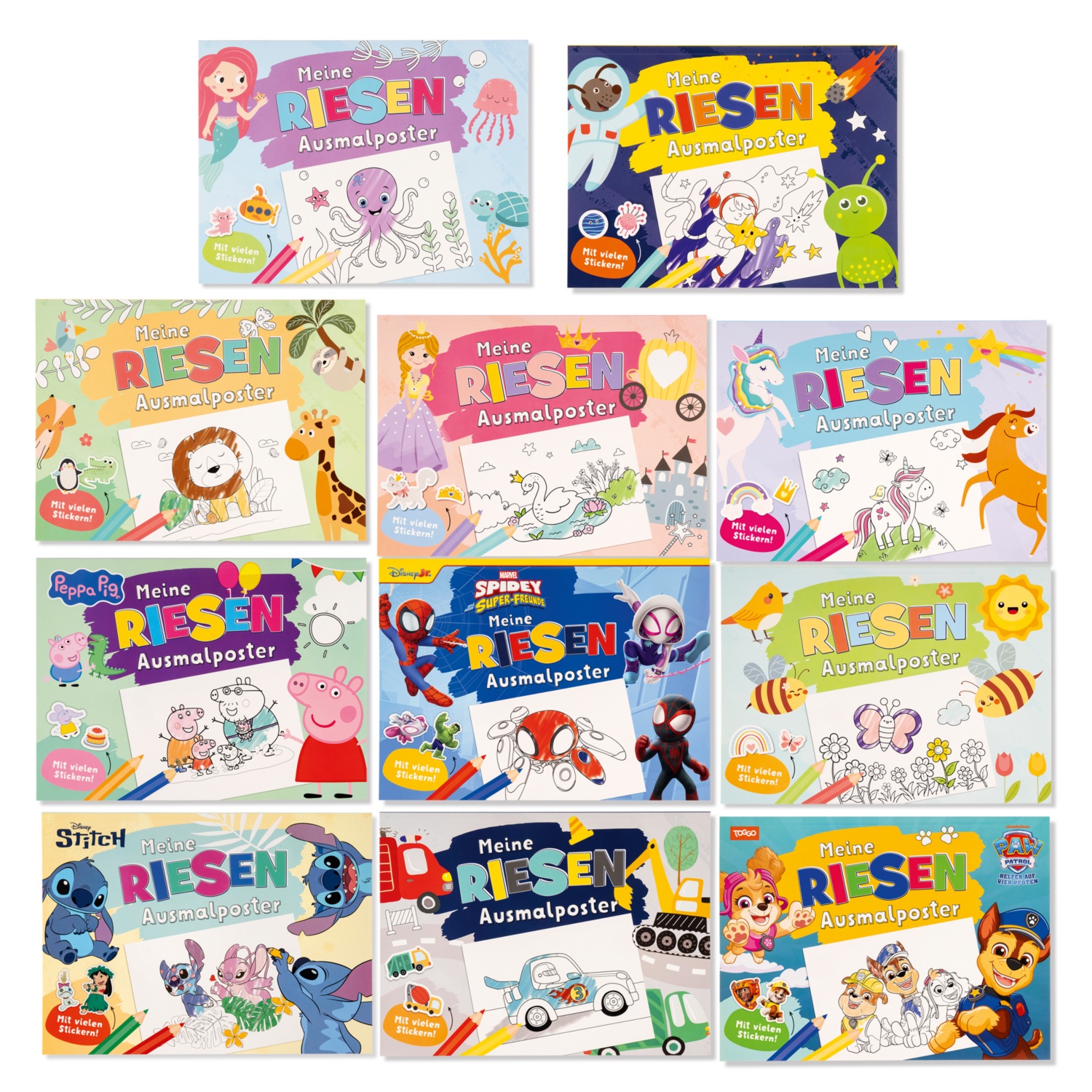 Riesige Malblöcke mit vielen tollen Stickern. Die Seiten lassen sich dank Perforation leicht aus dem Block herausreißen. Kindgerechte Ausmalmotive ab 3 Jahren mit bekannten Lizenzfiguren und beliebten Motiven.