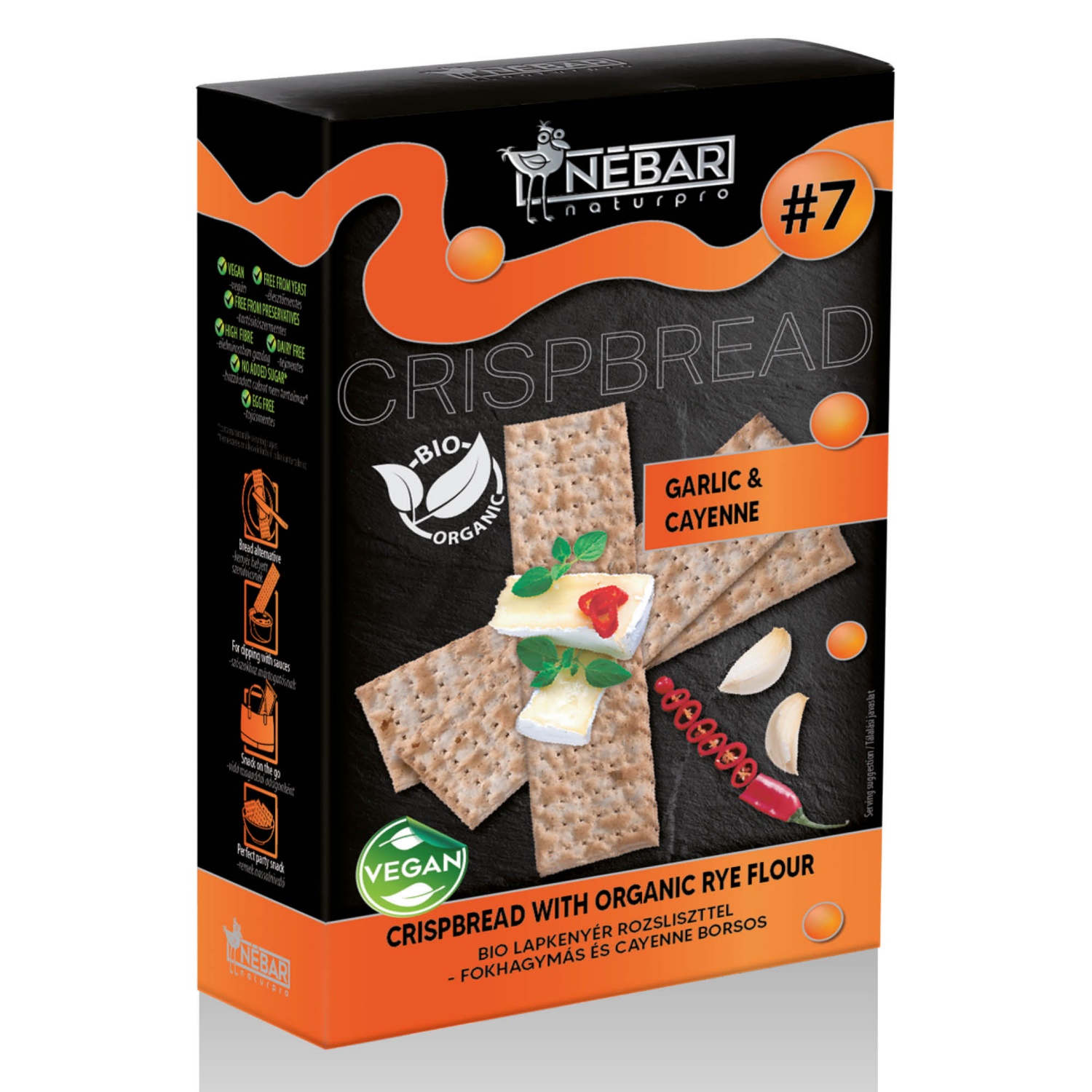 NÉBAR Lapkenyér, 175 g, fokhagyma és cayenne bors, rozsliszttel