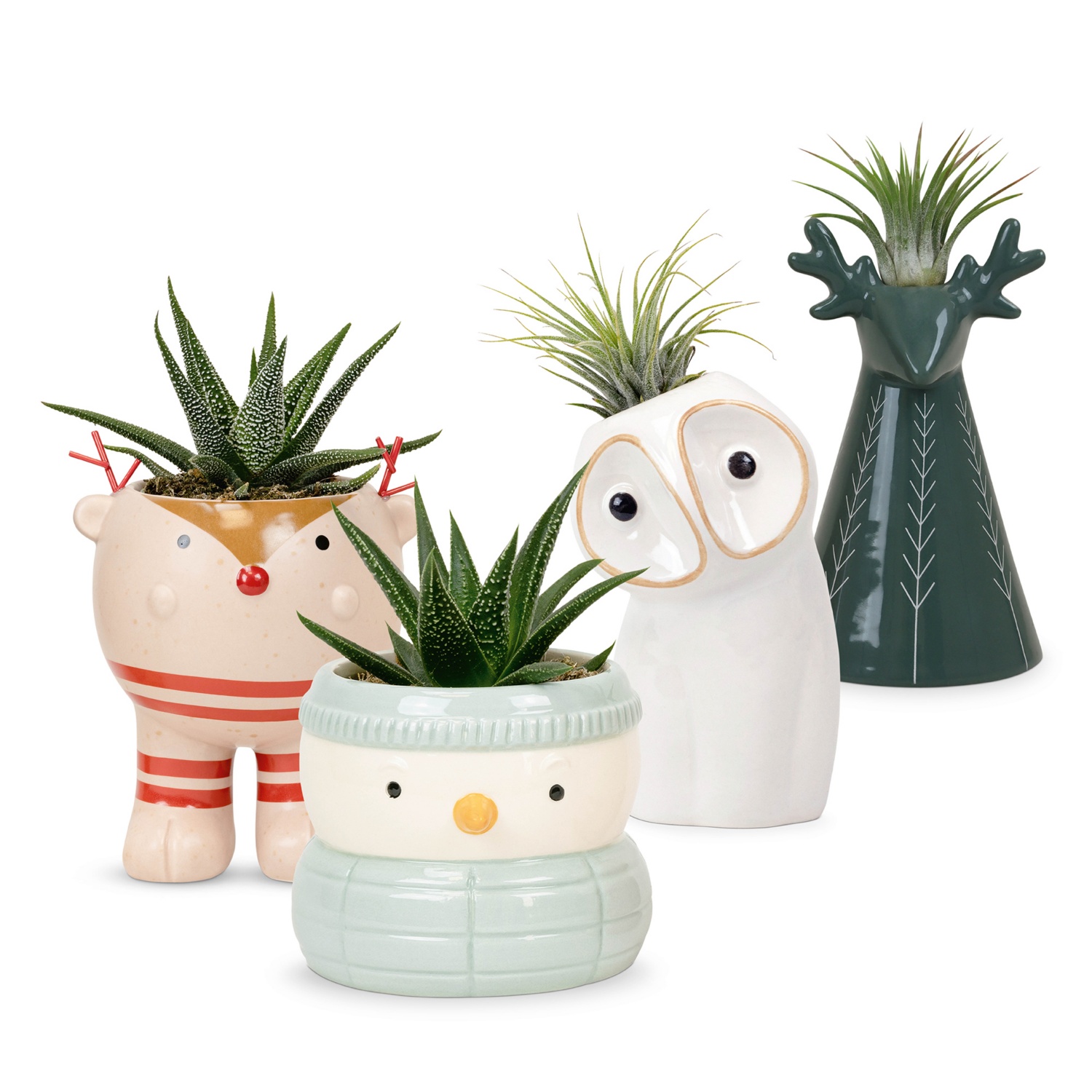 élő tillandsia vagy aloe dekoratív állatos, ill. figurás kerámiában, magasság kerámiával együtt: kb. 15 - 20 cm
