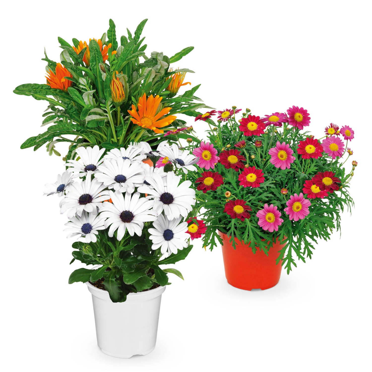 kb. 14 cm-es cserépben, magasság cseréppel együtt: kb. 20-35 cm (fajtától függően), különböző fajták,pl. záporvirág, margaréta, szegfű, szalmarózsa, fokföldi kékmargitvirág stb. Cikkszám: 80269