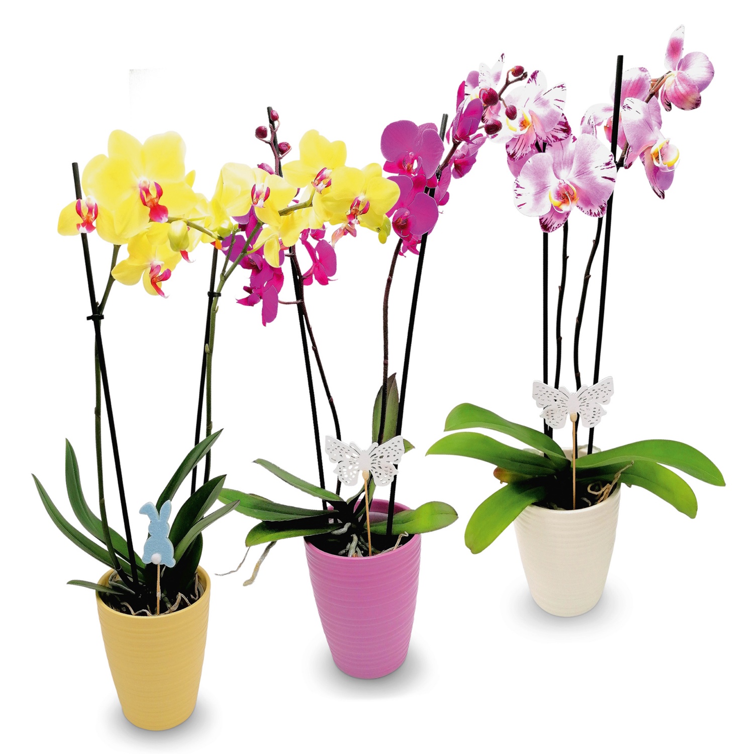 kb. 13 cm-es kerámiakaspóban, magasság kaspóval együtt: min. 60 - 70 cm, húsvéti dekorbeszúróval, különböző színű virágokkal