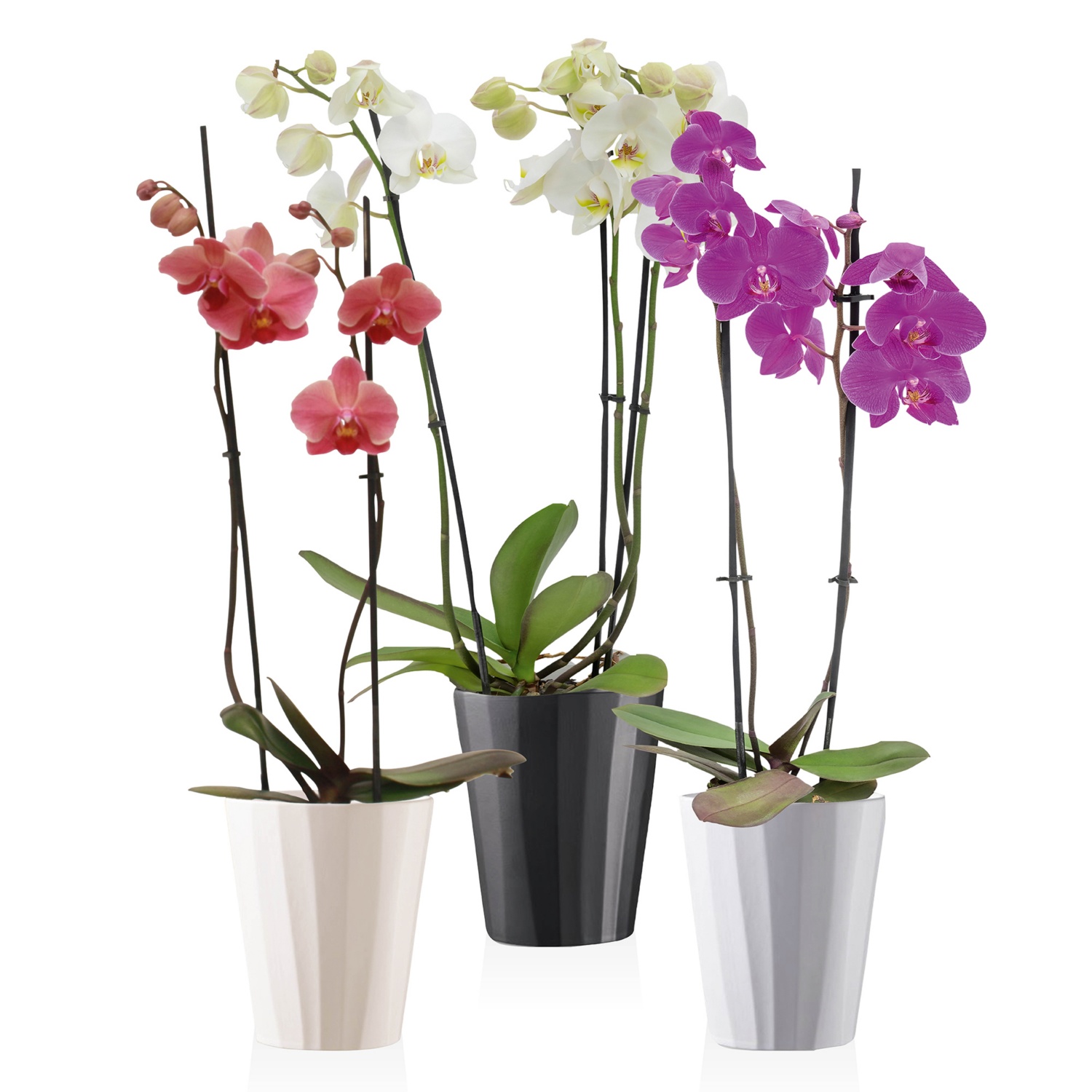kb. 13 cm-es kerámiakaspóban, magasság kaspóval együtt: kb. 55 - 70 cm, különböző színű virágokkal