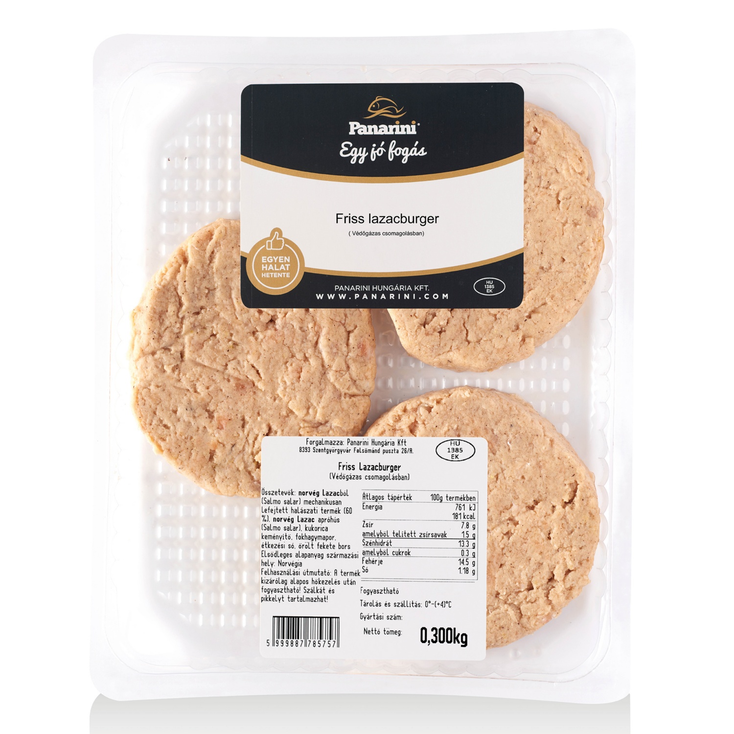 PANARINI Friss lazacburger, natúr, 3 darab