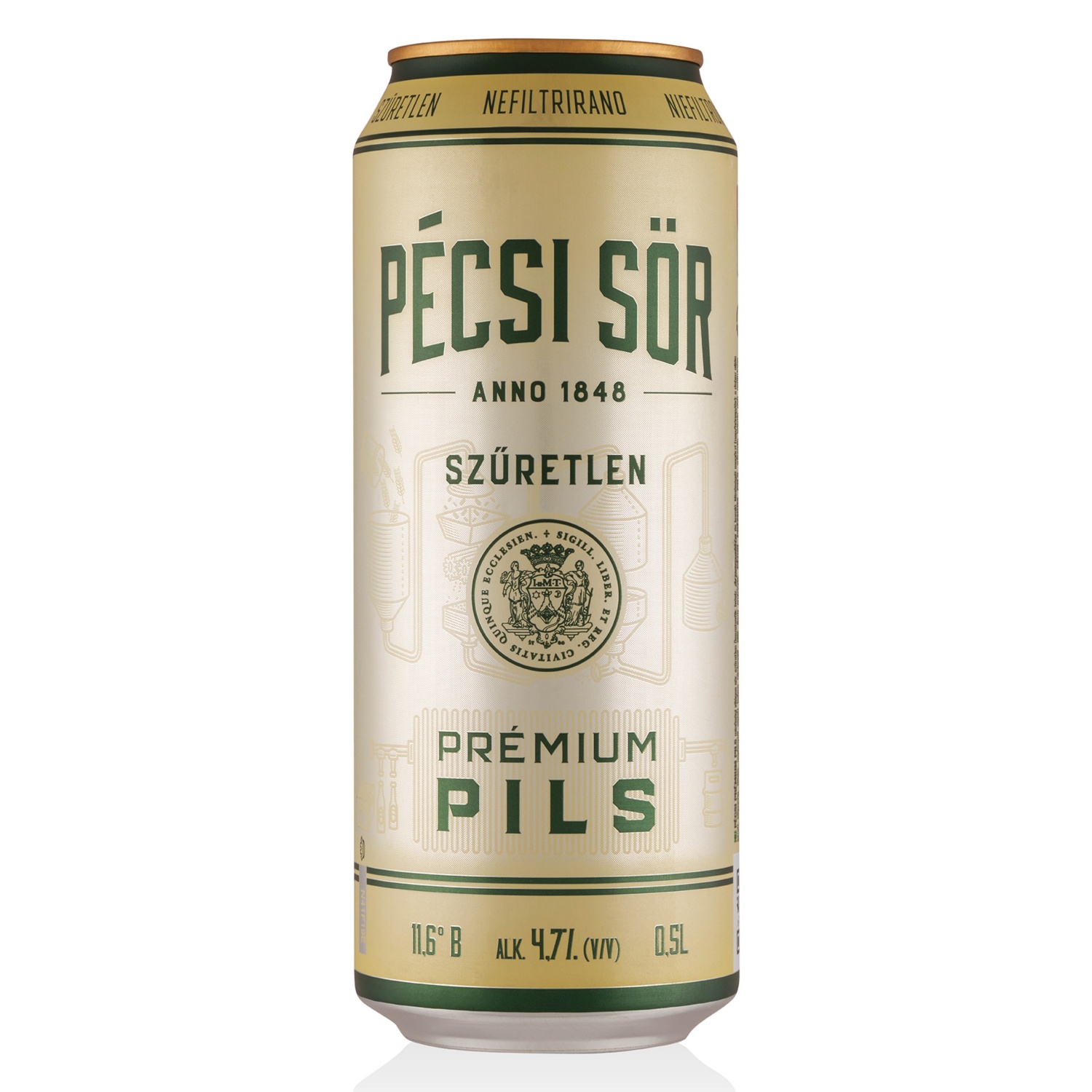 PÉCSI Prémium világos sör, szűretlen pils, 0,5 l