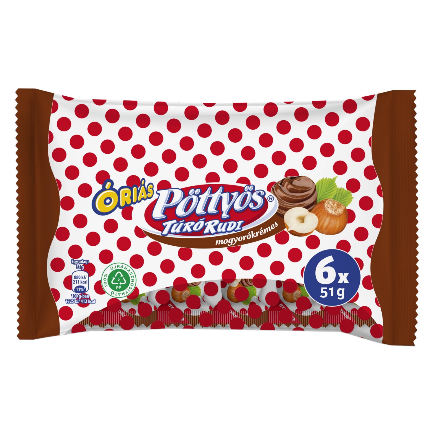 PÖTTYÖS TÚRÓ RUDI mogyorókrémes, 6 darab